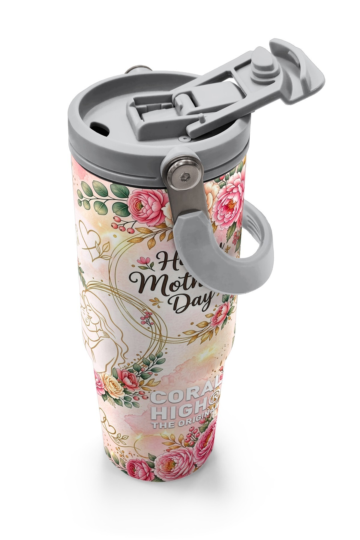 Coral High Anneler Gününe Özel Anne Kız Çocuk Desenli Pipetli ve Direkt İçim Çelik Termos 900 ml 38761