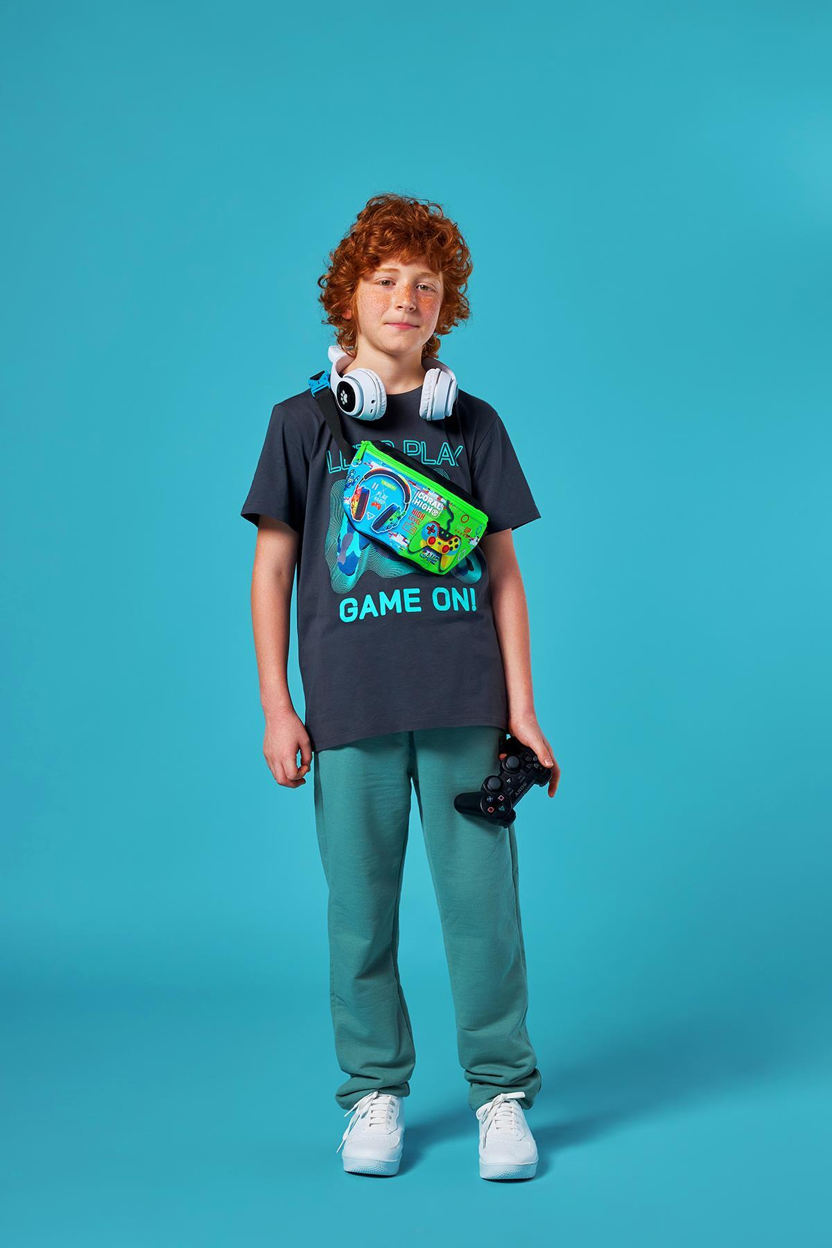 Coral High Kids Siyah Fosforlu Yeşil Kulaklık Game Desenli Bel Çantası 11559