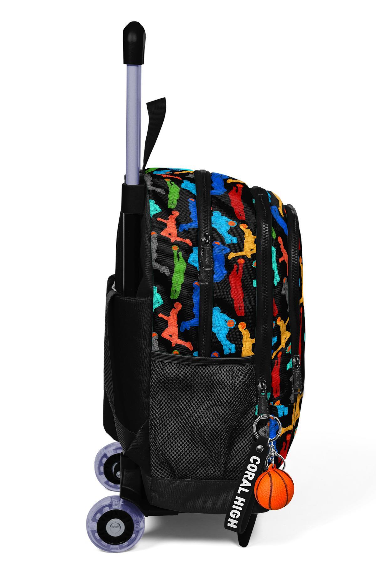 Coral High Kids Siyah Basketbol Desenli Üç Bölmeli Çekçekli Okul Sırt Çantası 23377