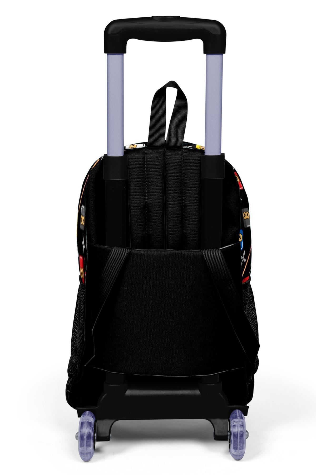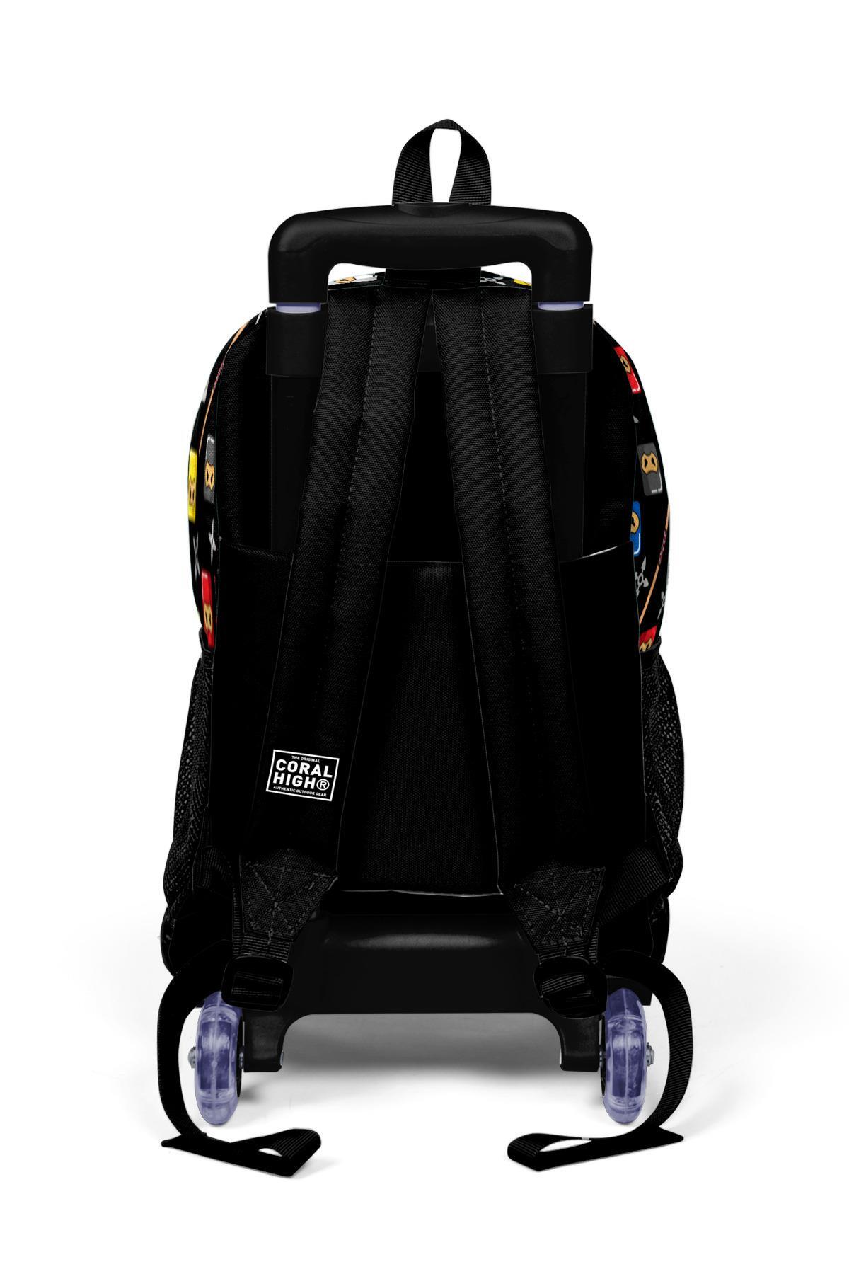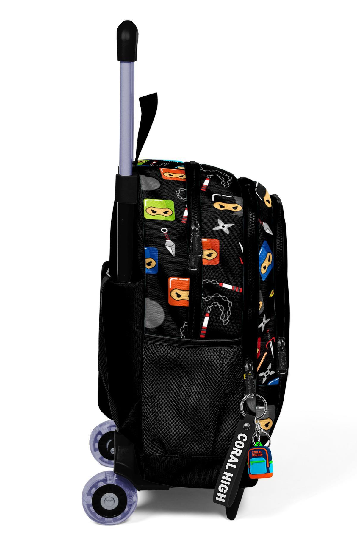 Coral High Kids Siyah Ninja Desenli Üç Bölmeli Çekçekli Okul Sırt Çantası 23381