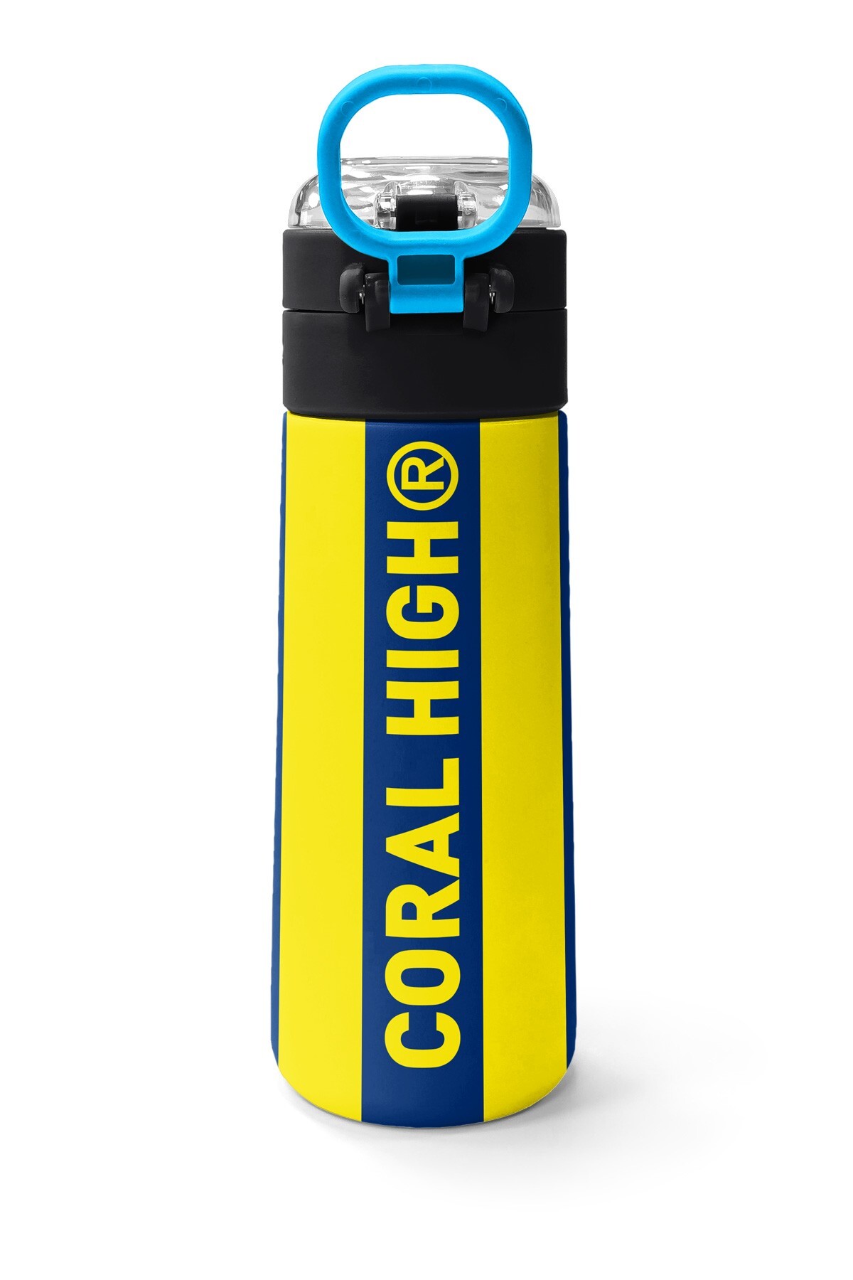 Coral High Kids Sarı Lacivert Çubuklu Pipetli ve Direkt İçim Çelik Termos 500 ml 31791
