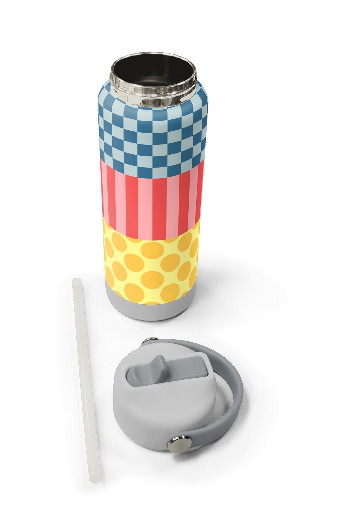 Coral High Çok Renkli Dama Çizgi Puantiye Desenli Katlanır Ağızlıklı Çelik Termos 650 ml 38304