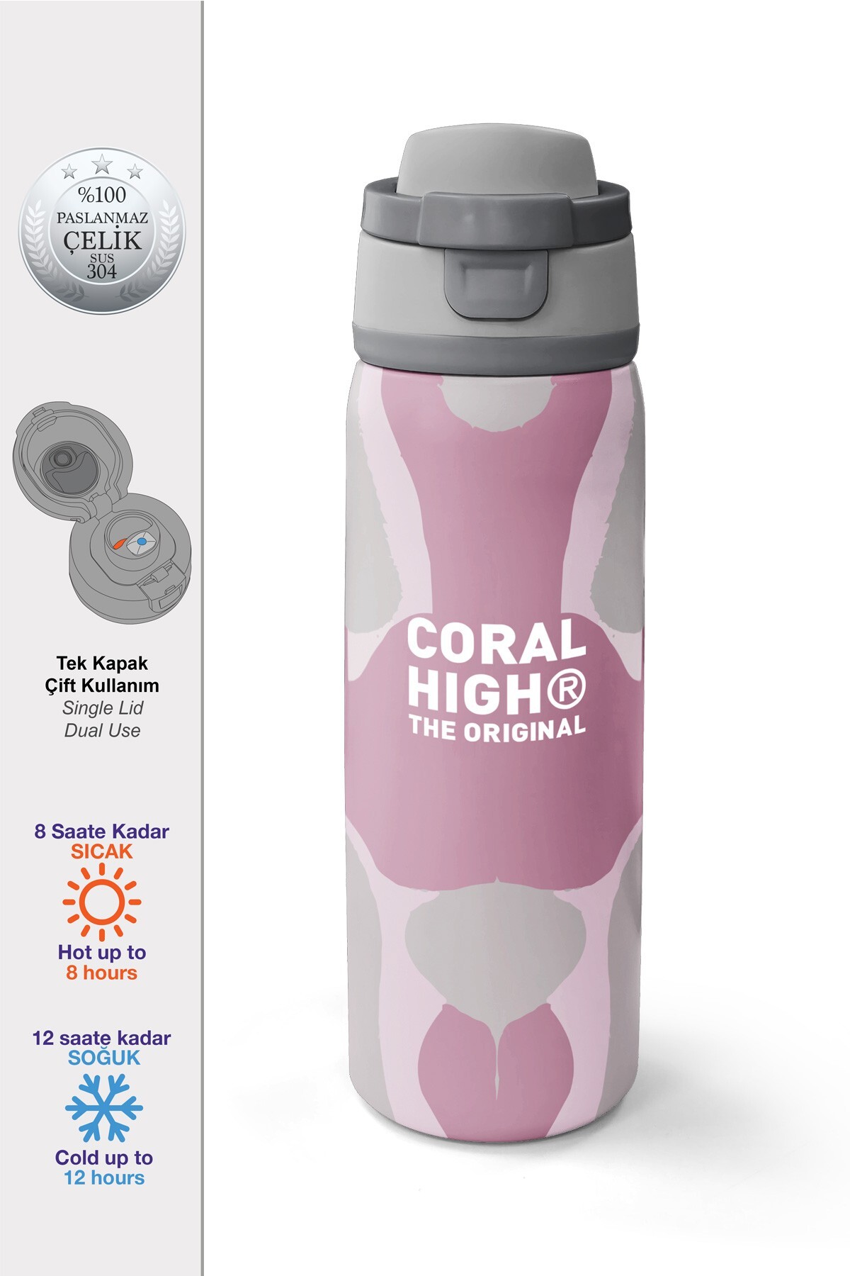 Coral High Desenli Pipetli ve Direkt İçim Çelik Termos 800 ml 38579