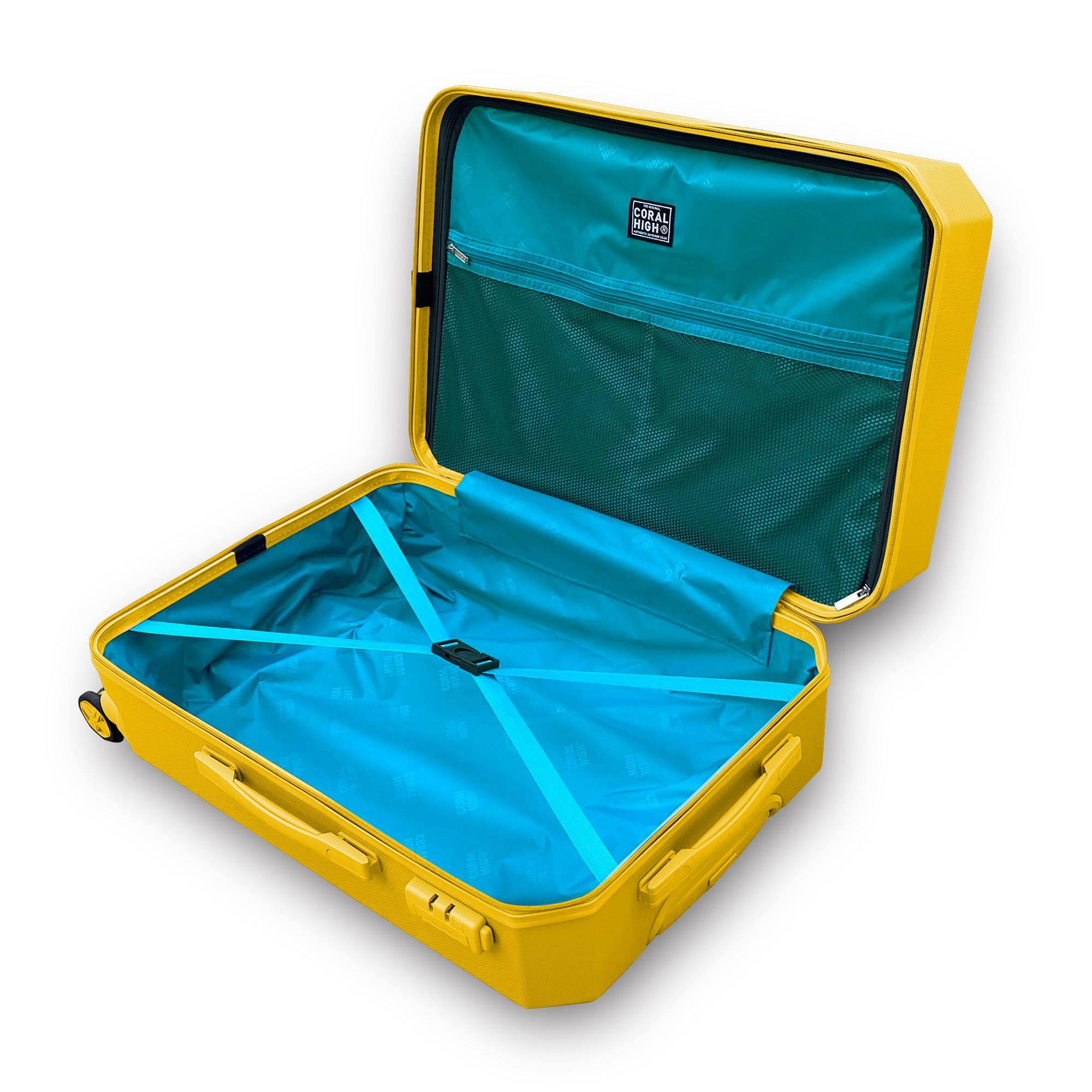 Coral High valiz ve makyaj çantaları geri dönüşüm ve atık plastik içermeyen %100 ABS malzemeden üretilmiştir.