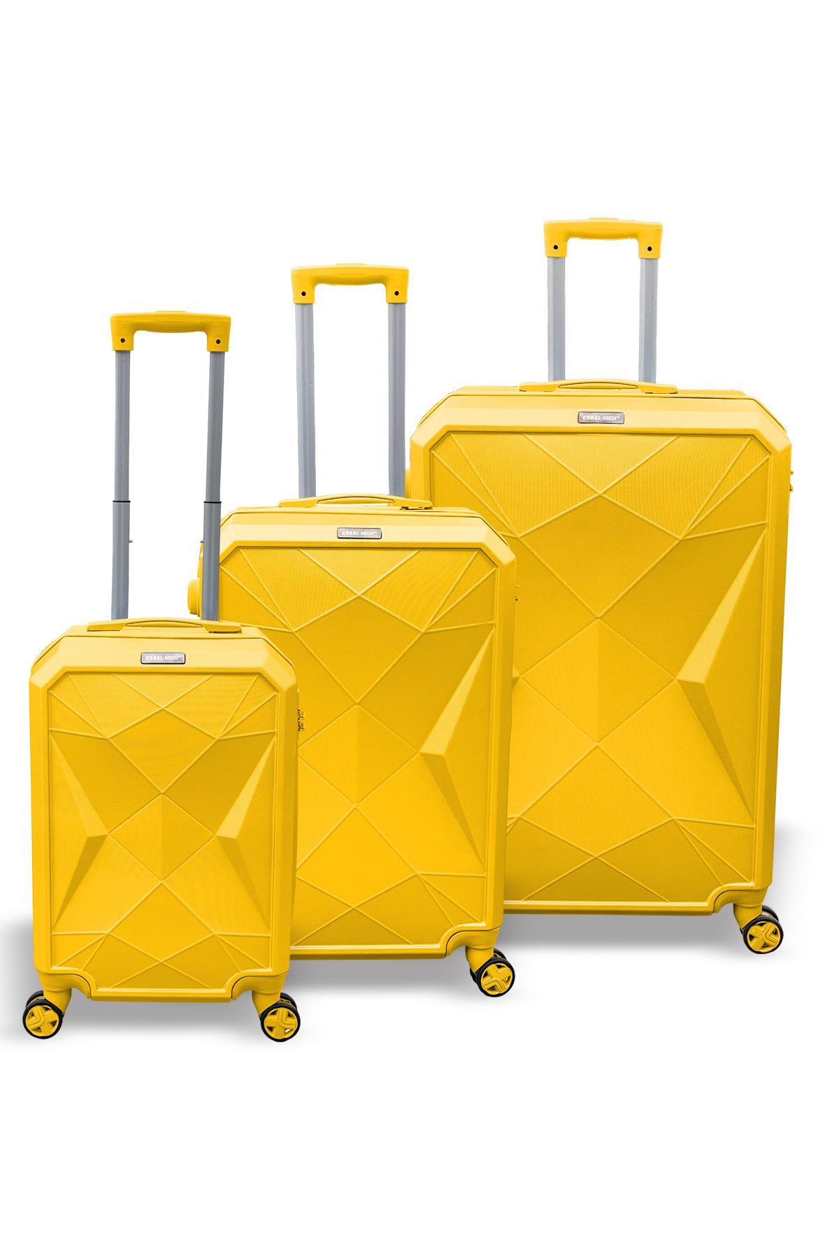 Coral High Diamond ABS Sarı 3'lü Valiz Seti 16625