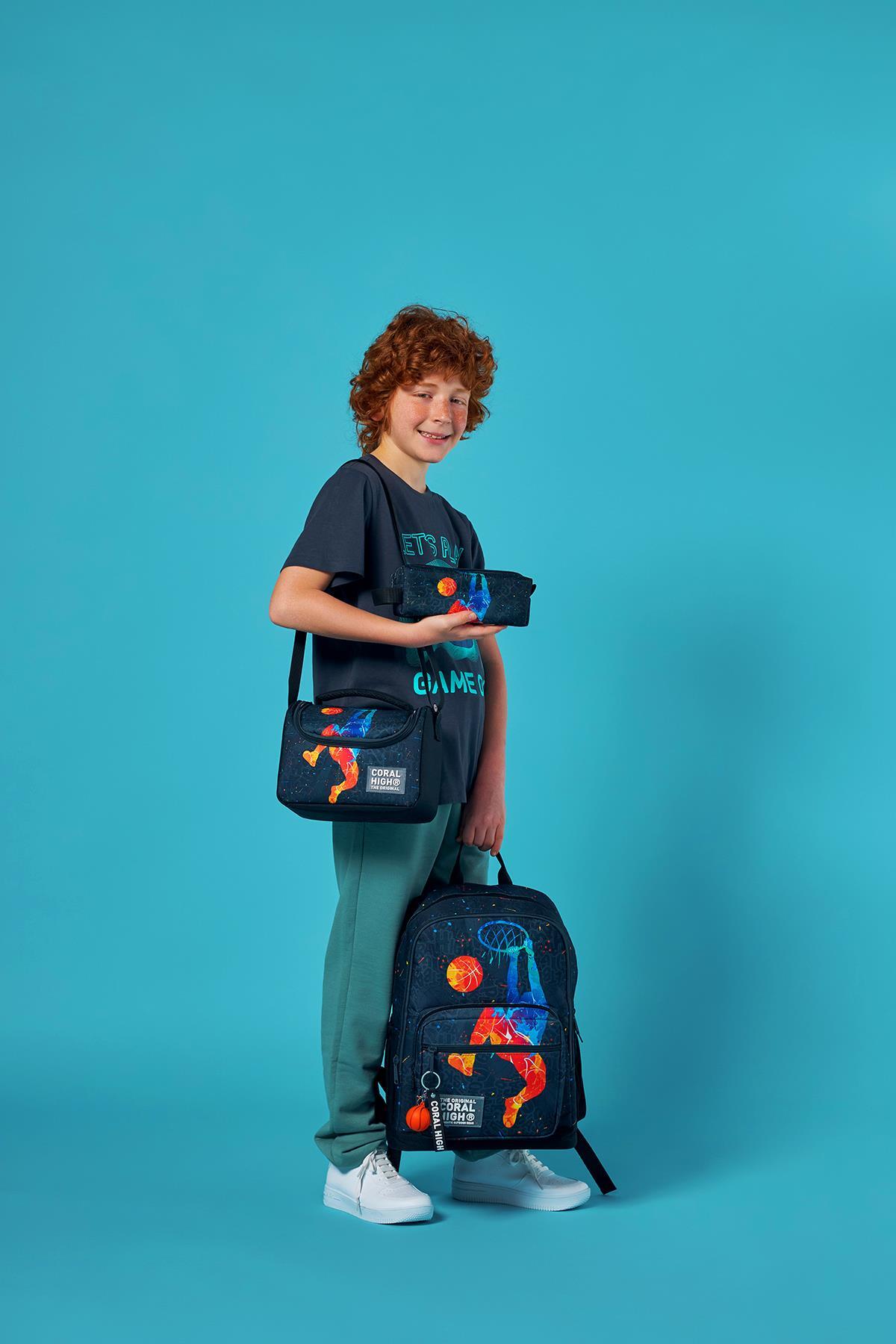 Coral High Gri Basketbol Desenli 3’lü Okul Çanta Seti SET0123643