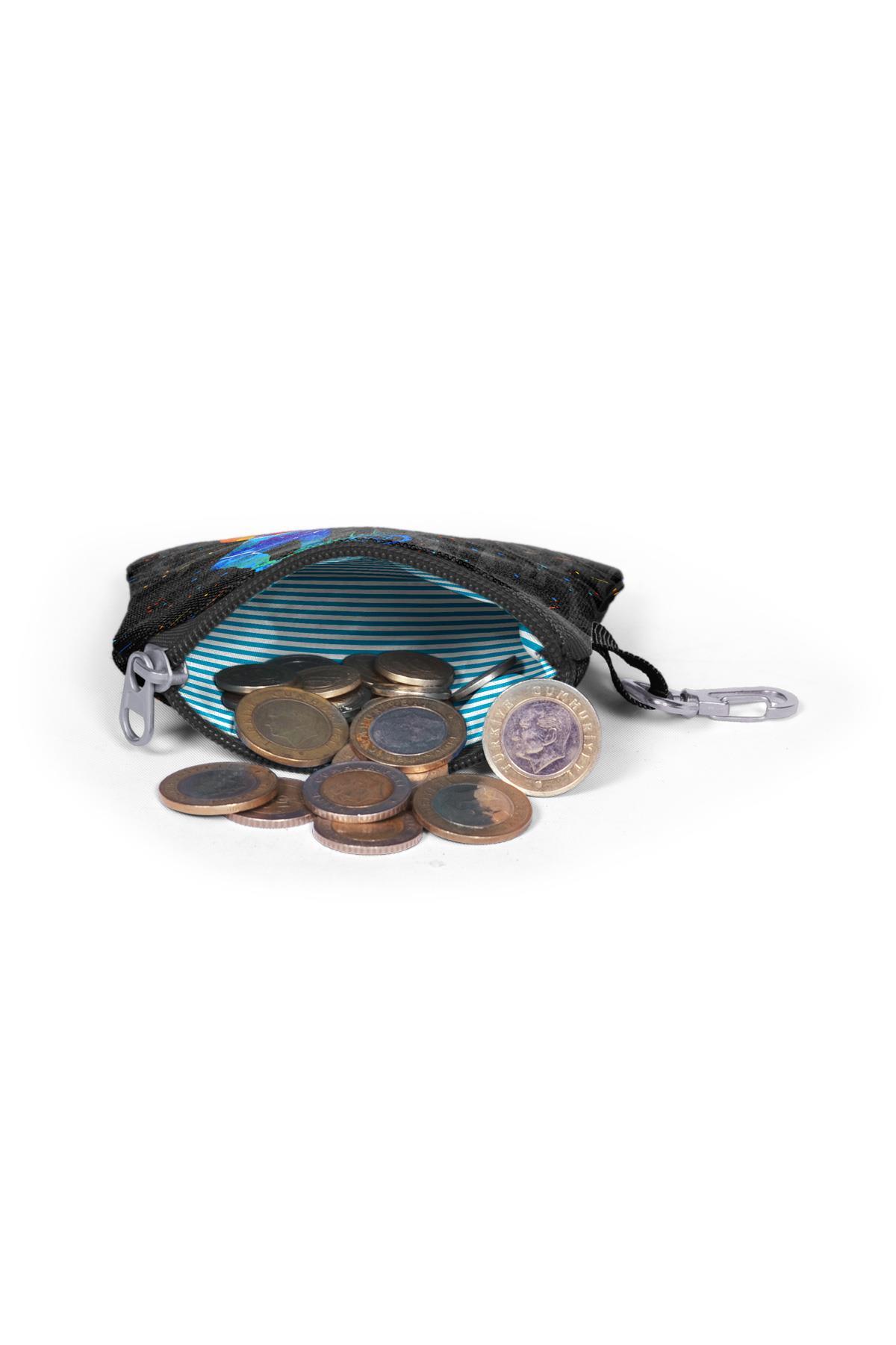 Tek bölmeli, fermuarlı bozuk para cüzdanı.