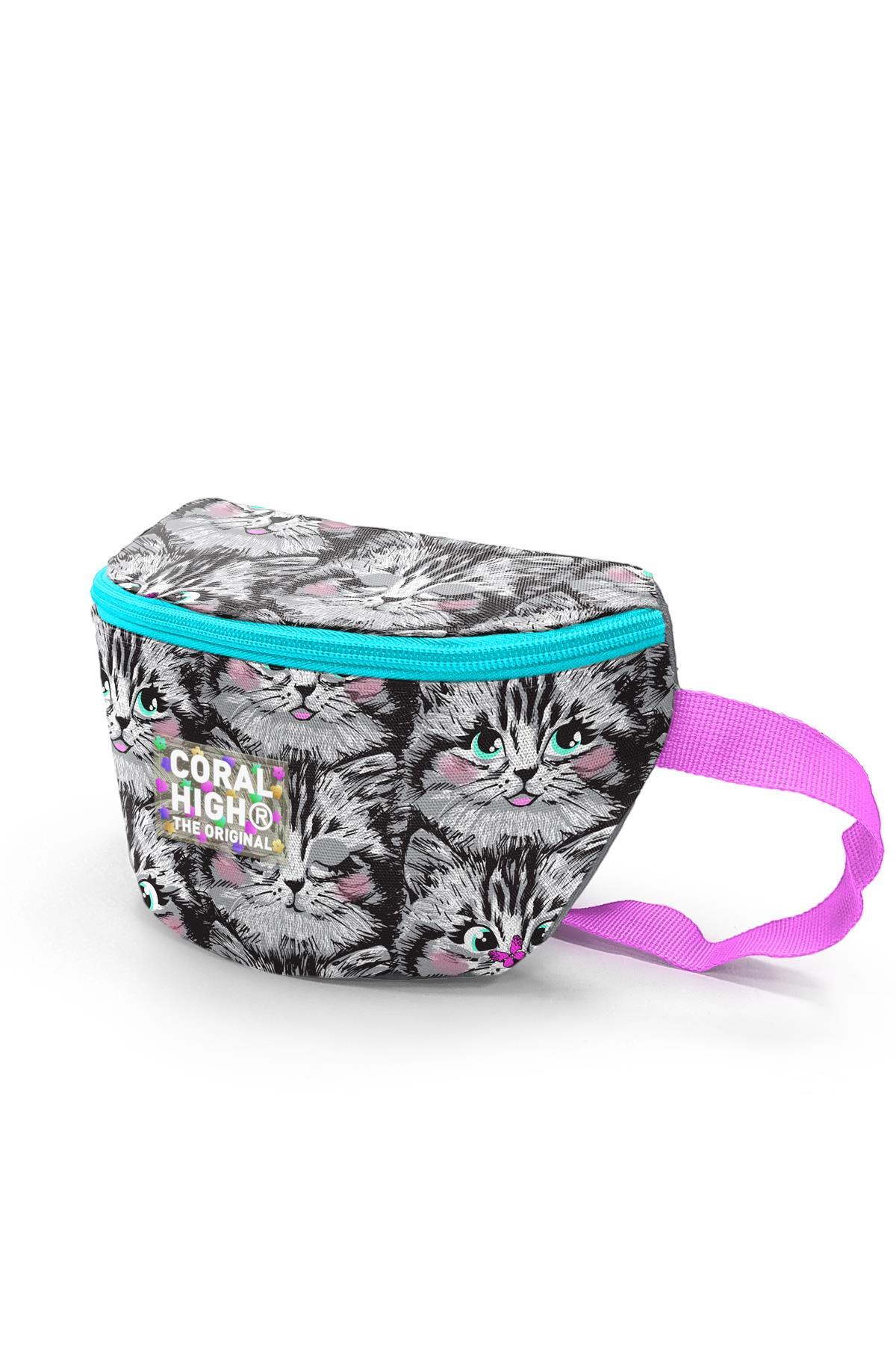 Coral High Gri Kedi Desenli Bel Çantası 11546