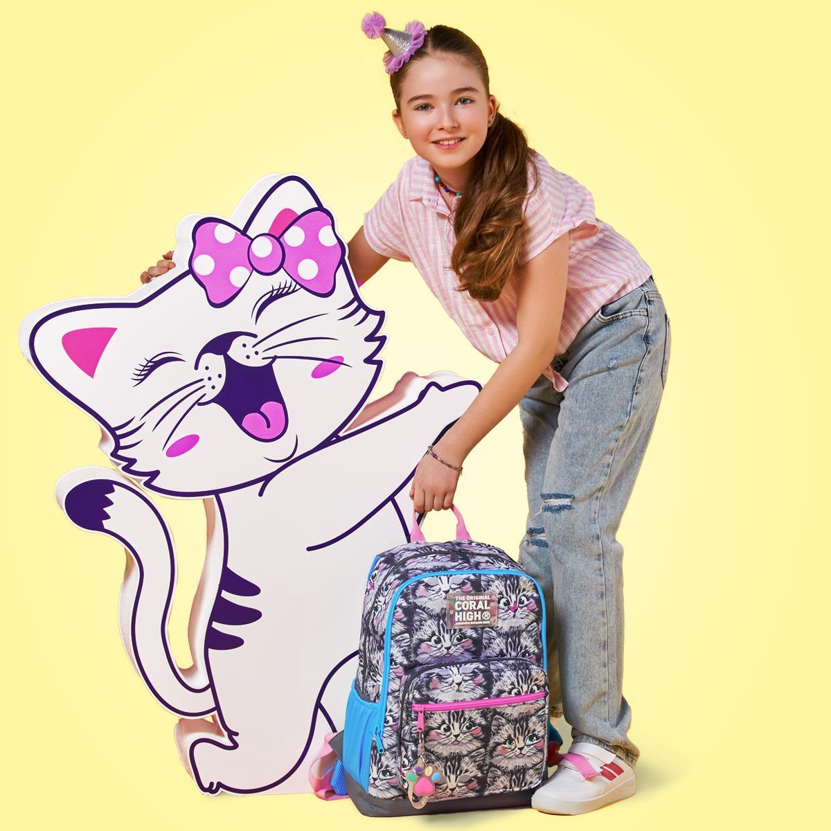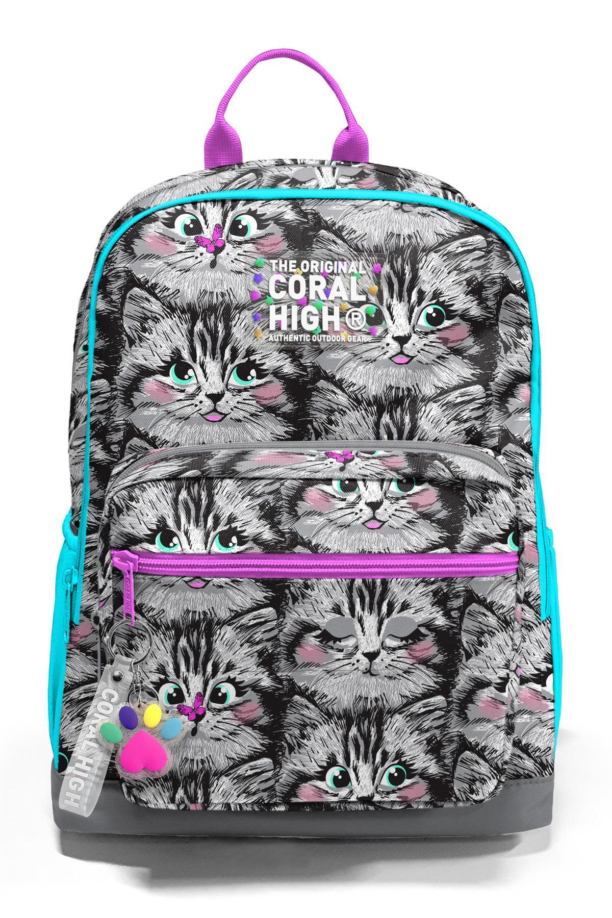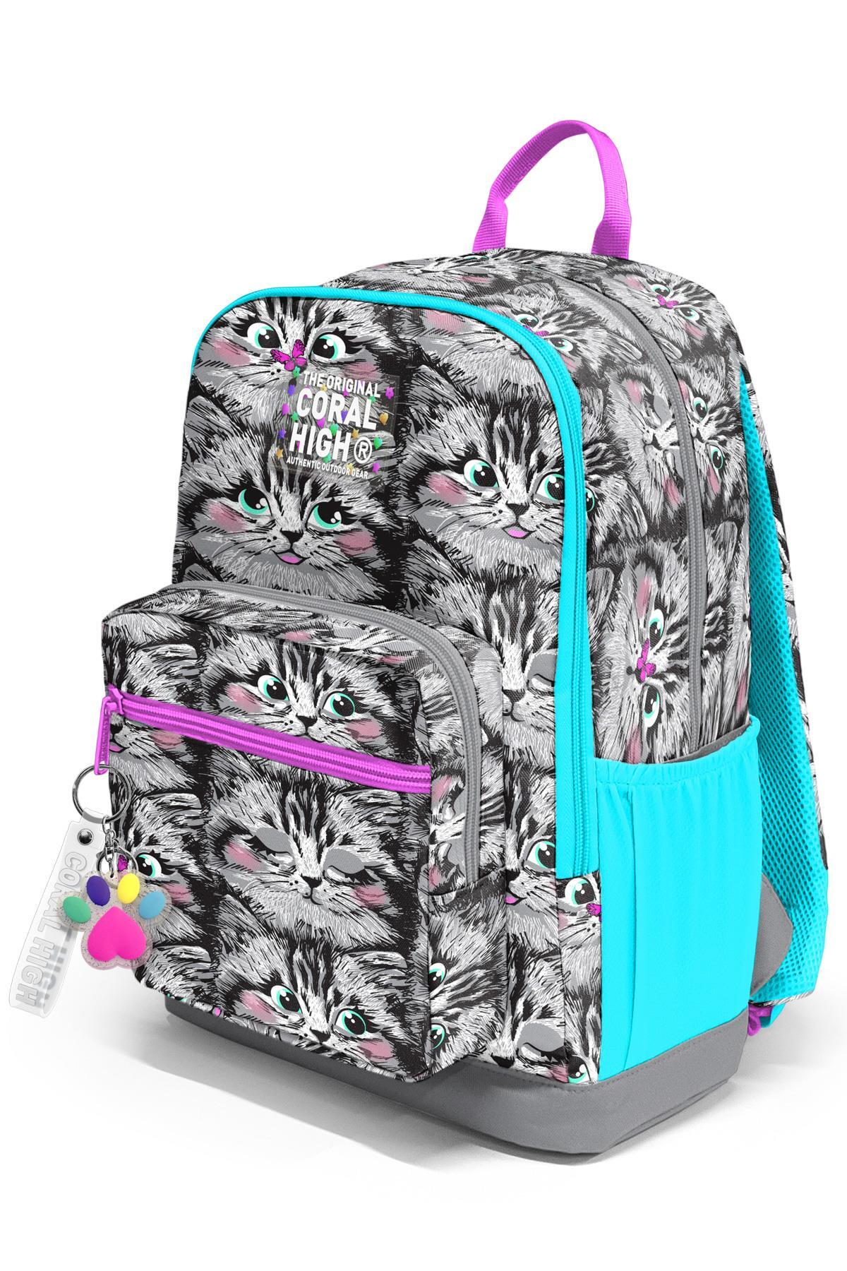 Coral High Gri Kedi Desenli Okul Sırt Çantası 23638