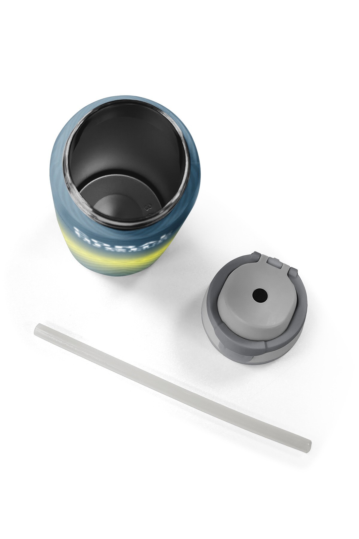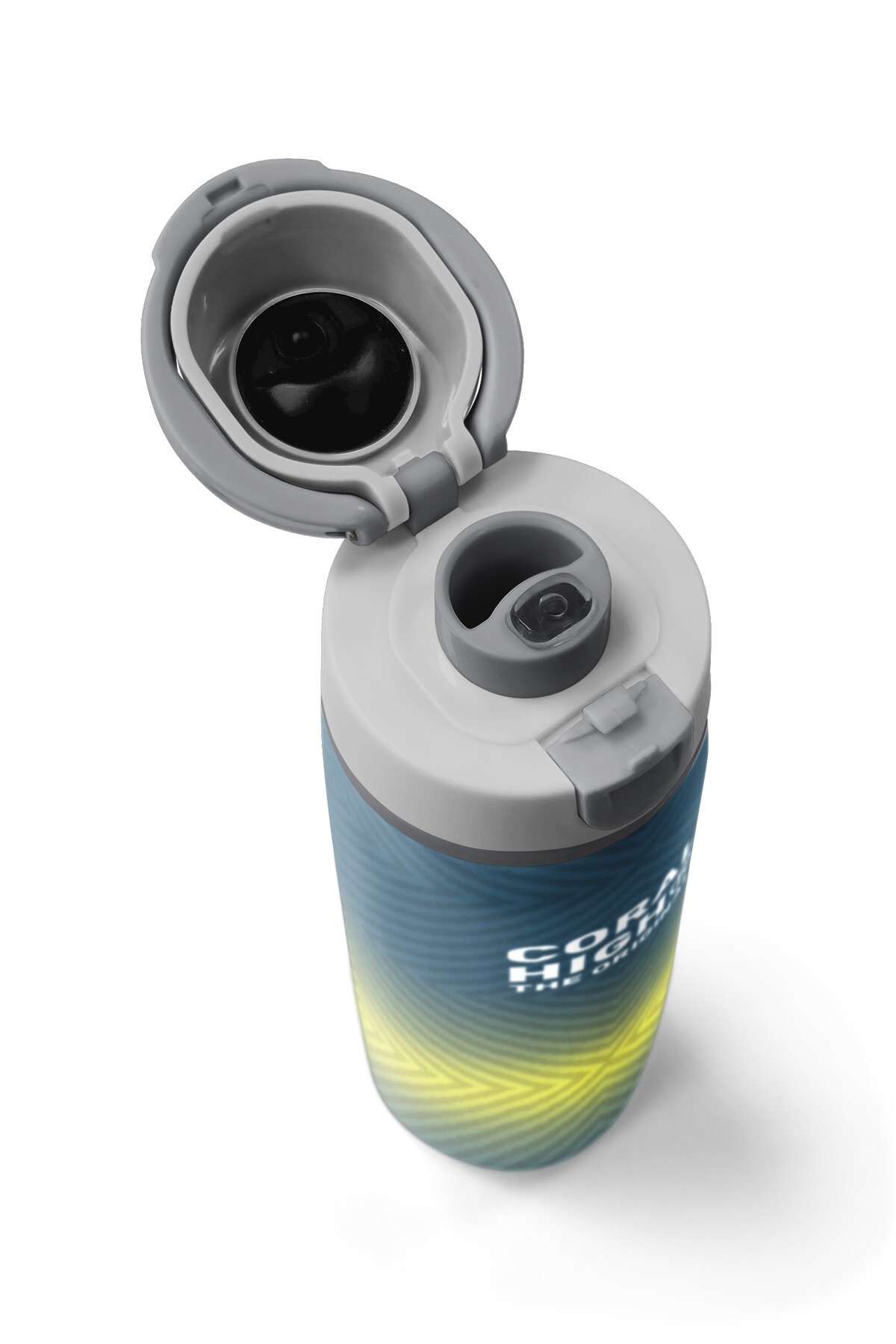 Coral High Gri Sarı Geometrik Desenli Pipetli ve Direkt İçim Çelik Termos 800 ml 38585