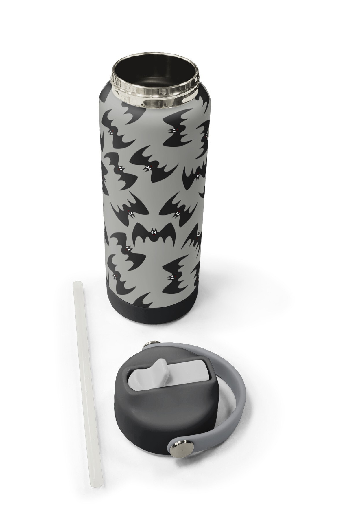 Coral High Gri Siyah Yarasa Desenli Katlanır Ağızlıklı Çelik Termos 650 ml 38326