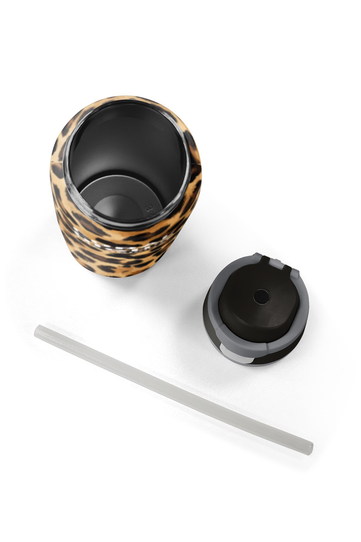 Coral High Kahverengi Leopar Desenli Pipetli ve Direkt İçim Çelik Termos 800 ml 38541