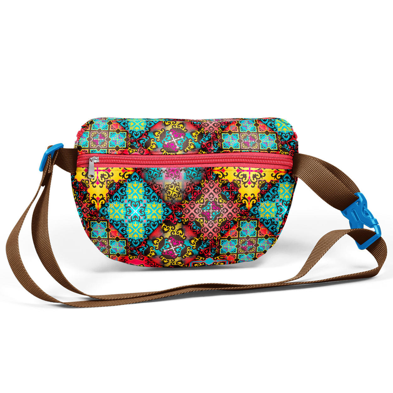 Çift bölmeli, fermuarlı bel çantası.