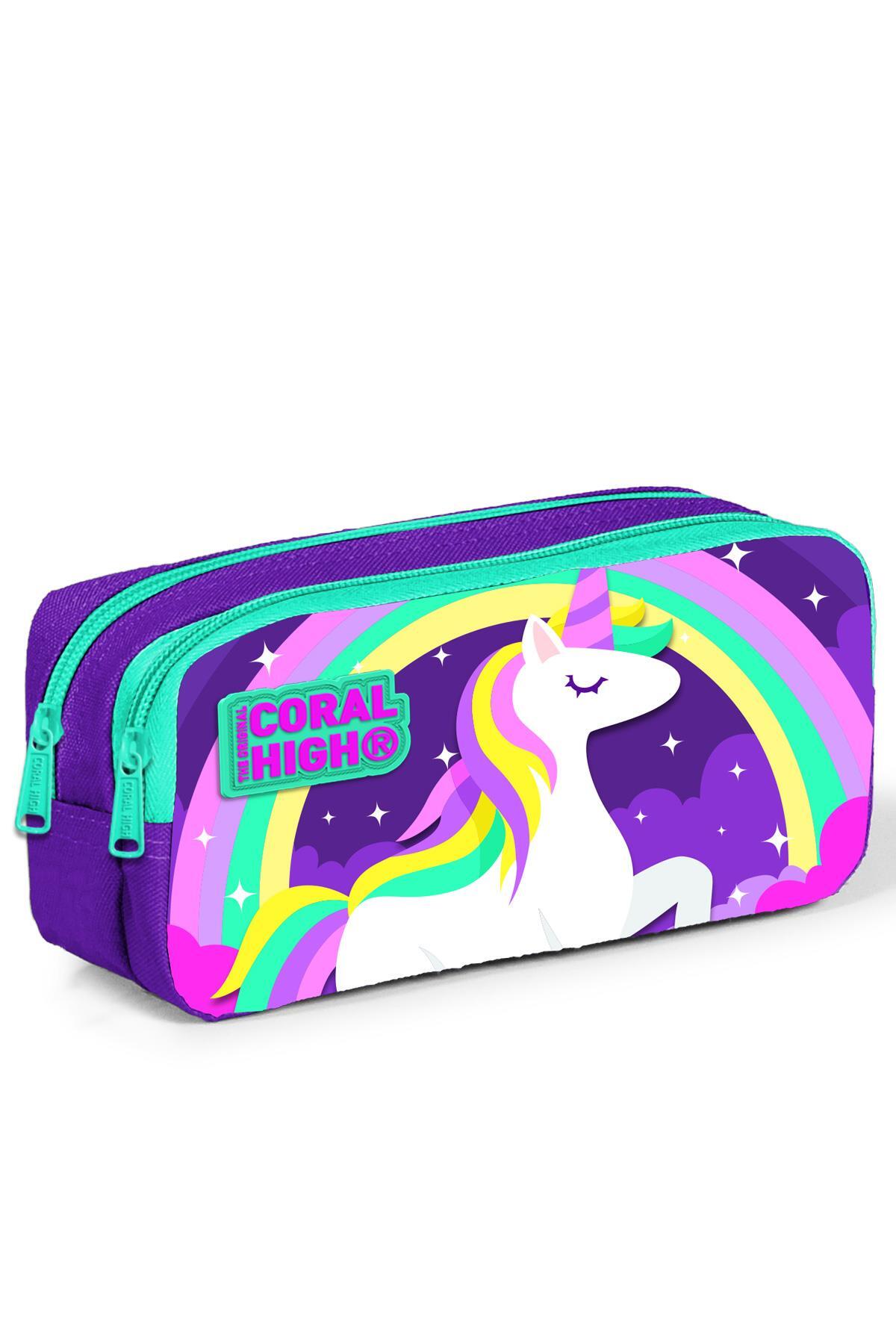 Coral High Kids Mor Su Yeşili Unicorn Desenli İki Bölmeli Kalem Çantası 22294