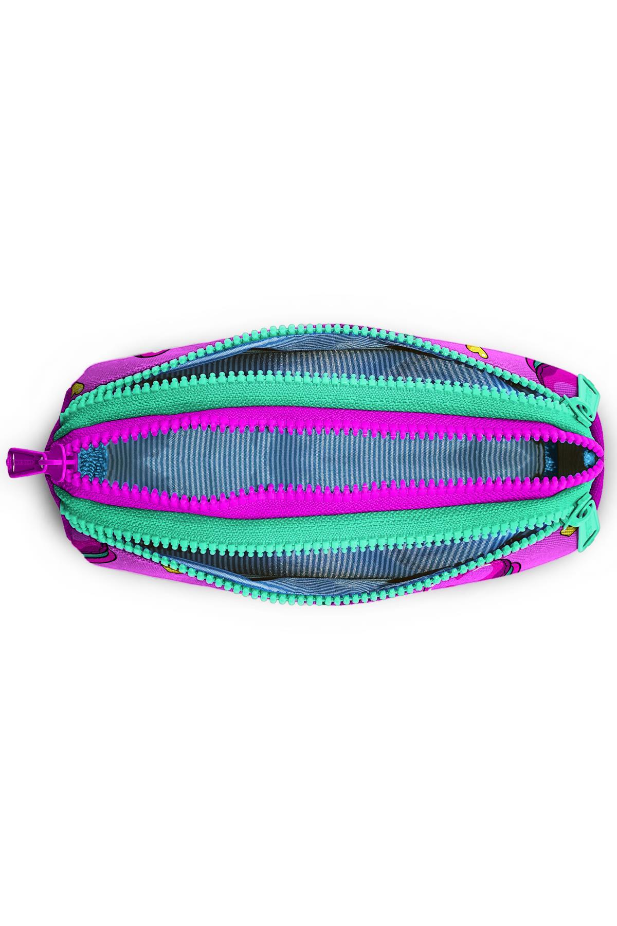 Coral High Kids Açık Pembe Su Yeşili Makaron Desenli Üç Bölmeli Kalem Çantası 22301