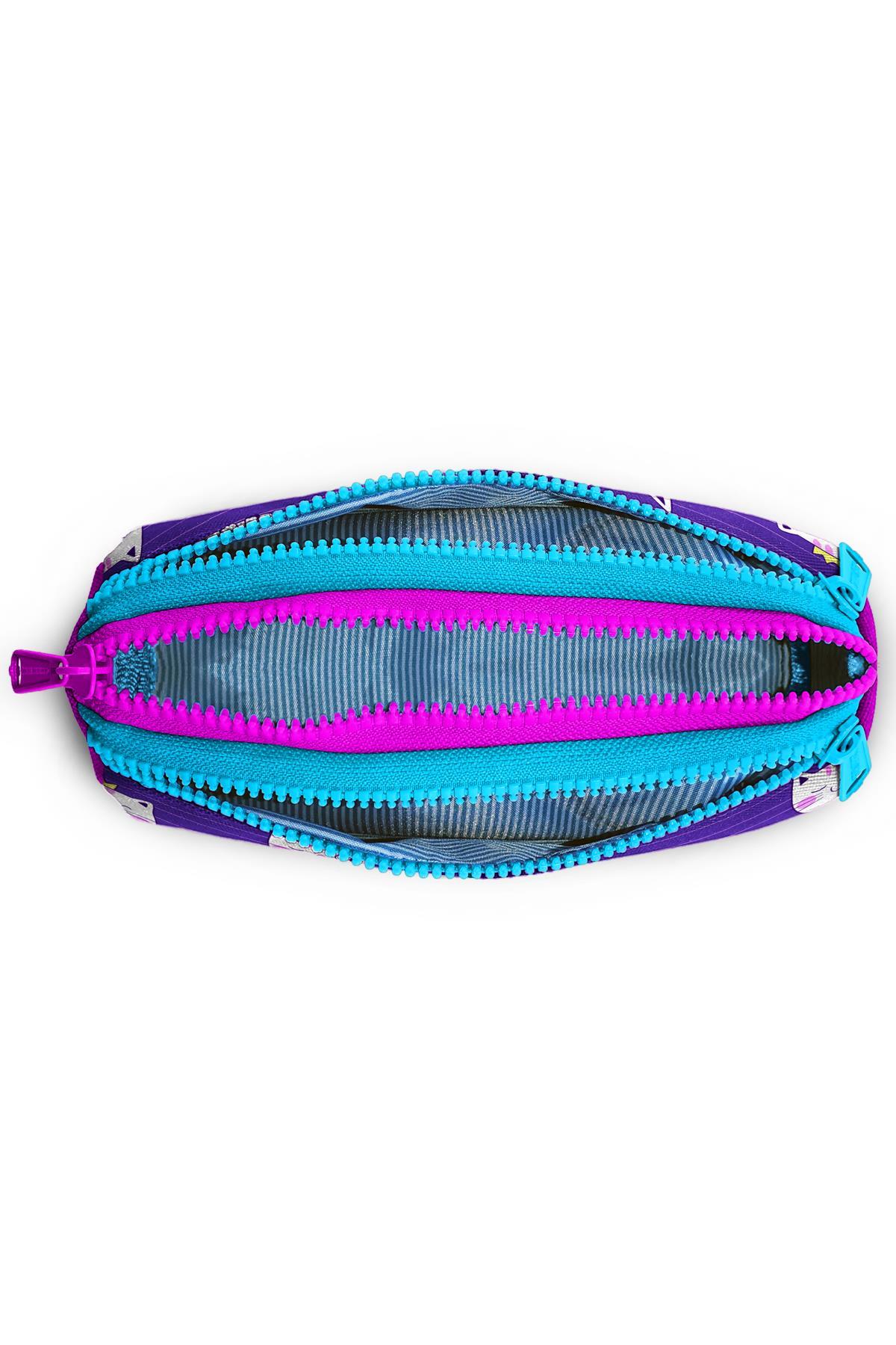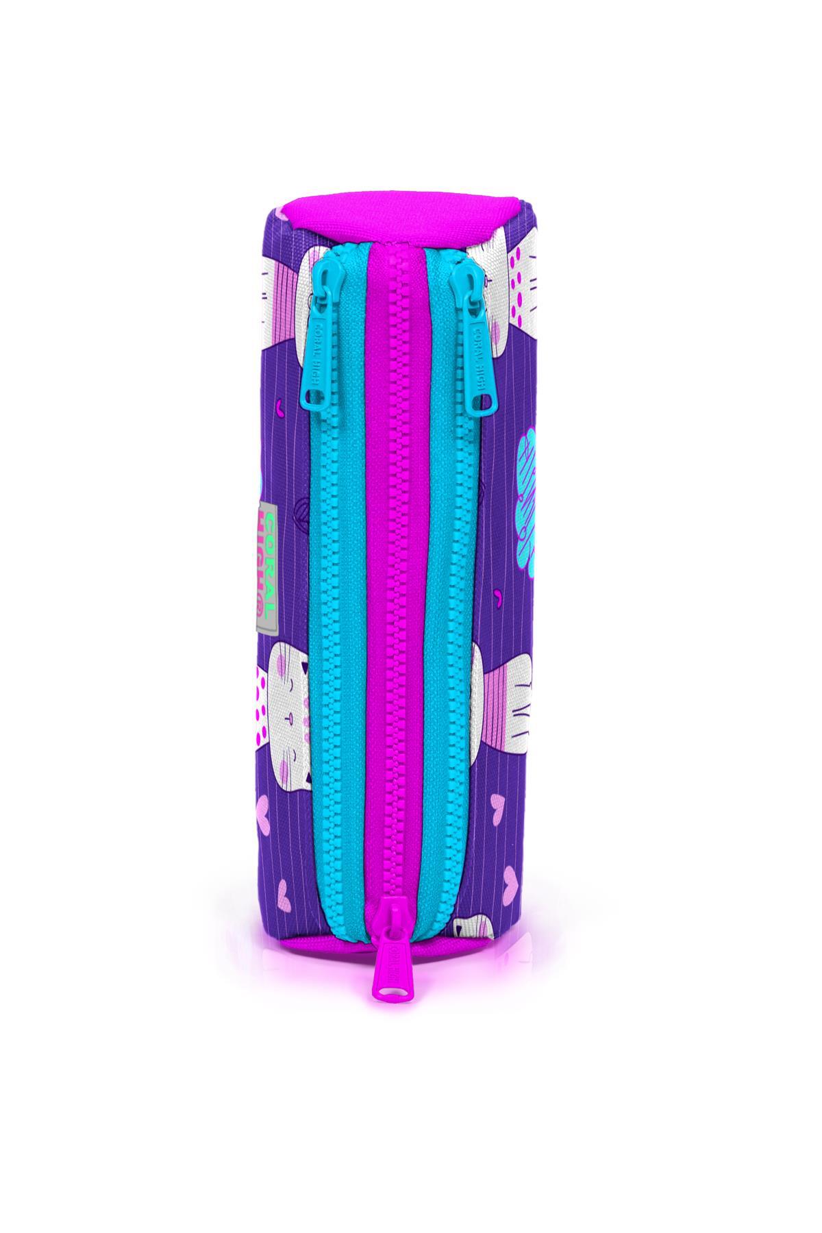 Coral High Kids Mor Pembe Kedi Desenli Üç Bölmeli Kalem Çantası 22304