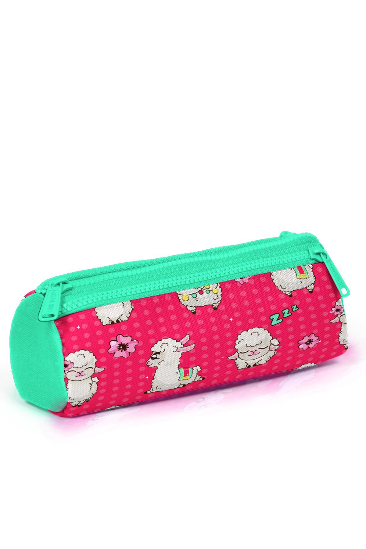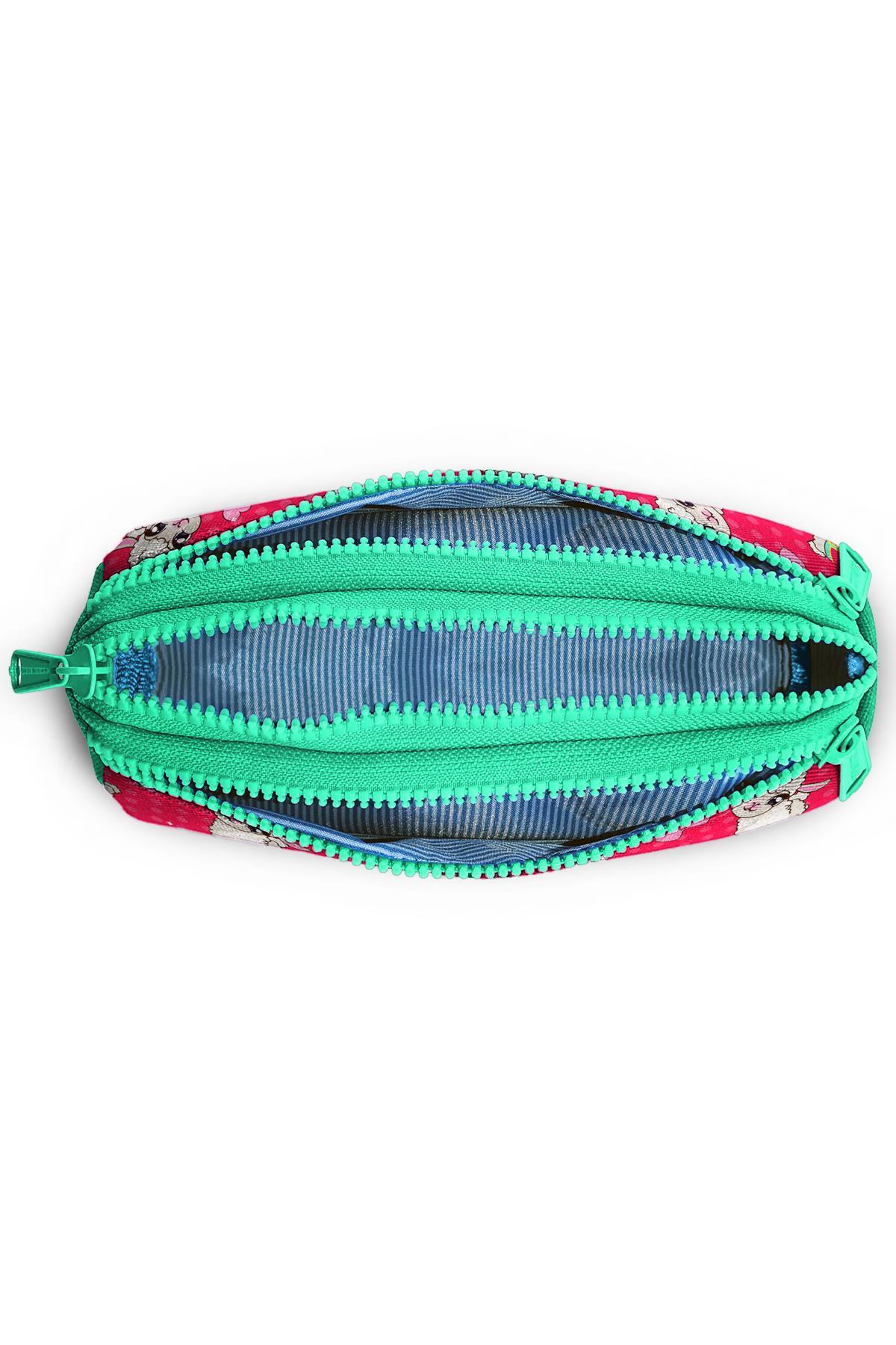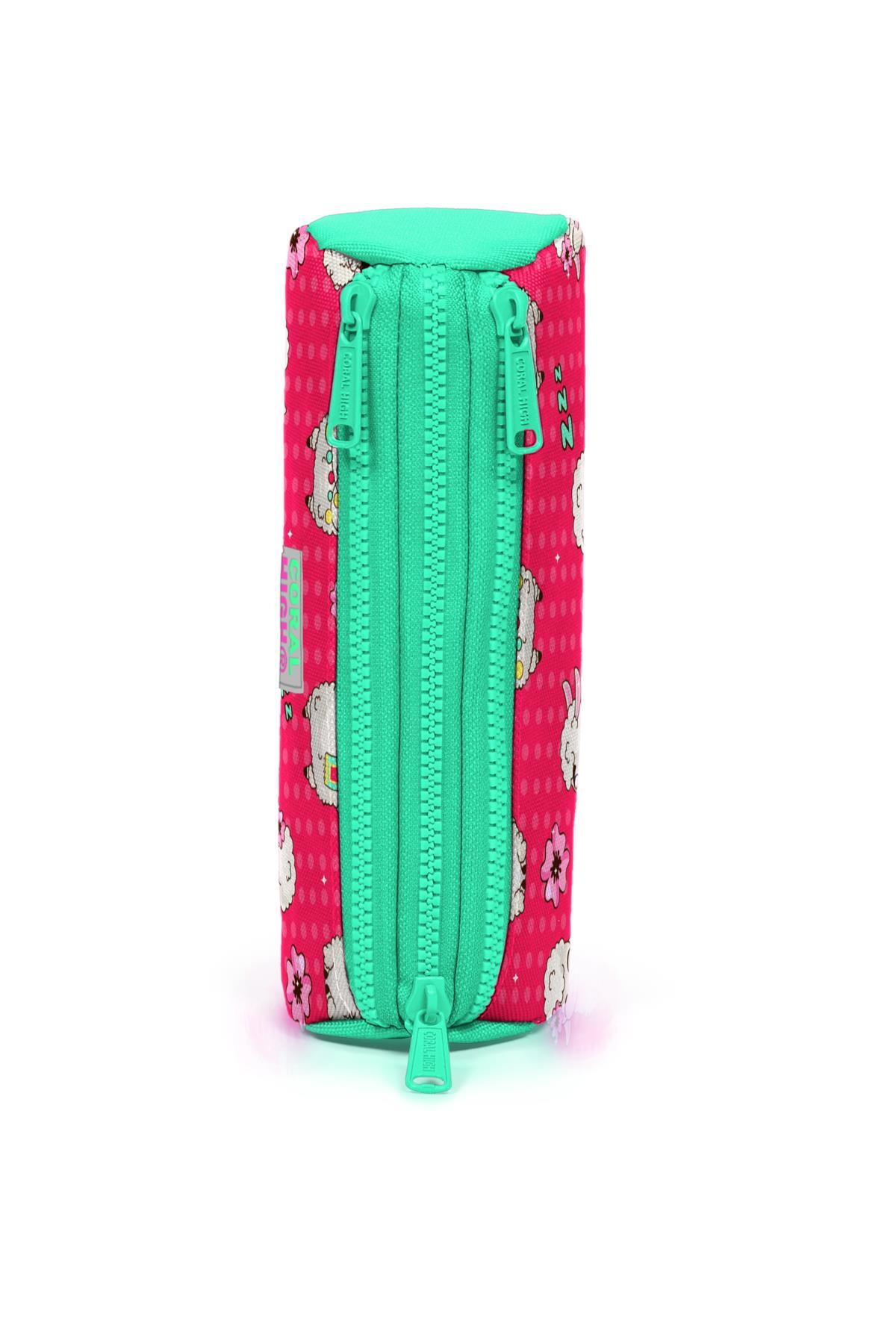 Coral High Kids Neon Mercan Su Yeşili Alpaka Desenli Üç Bölmeli Kalem Çantası 22308
