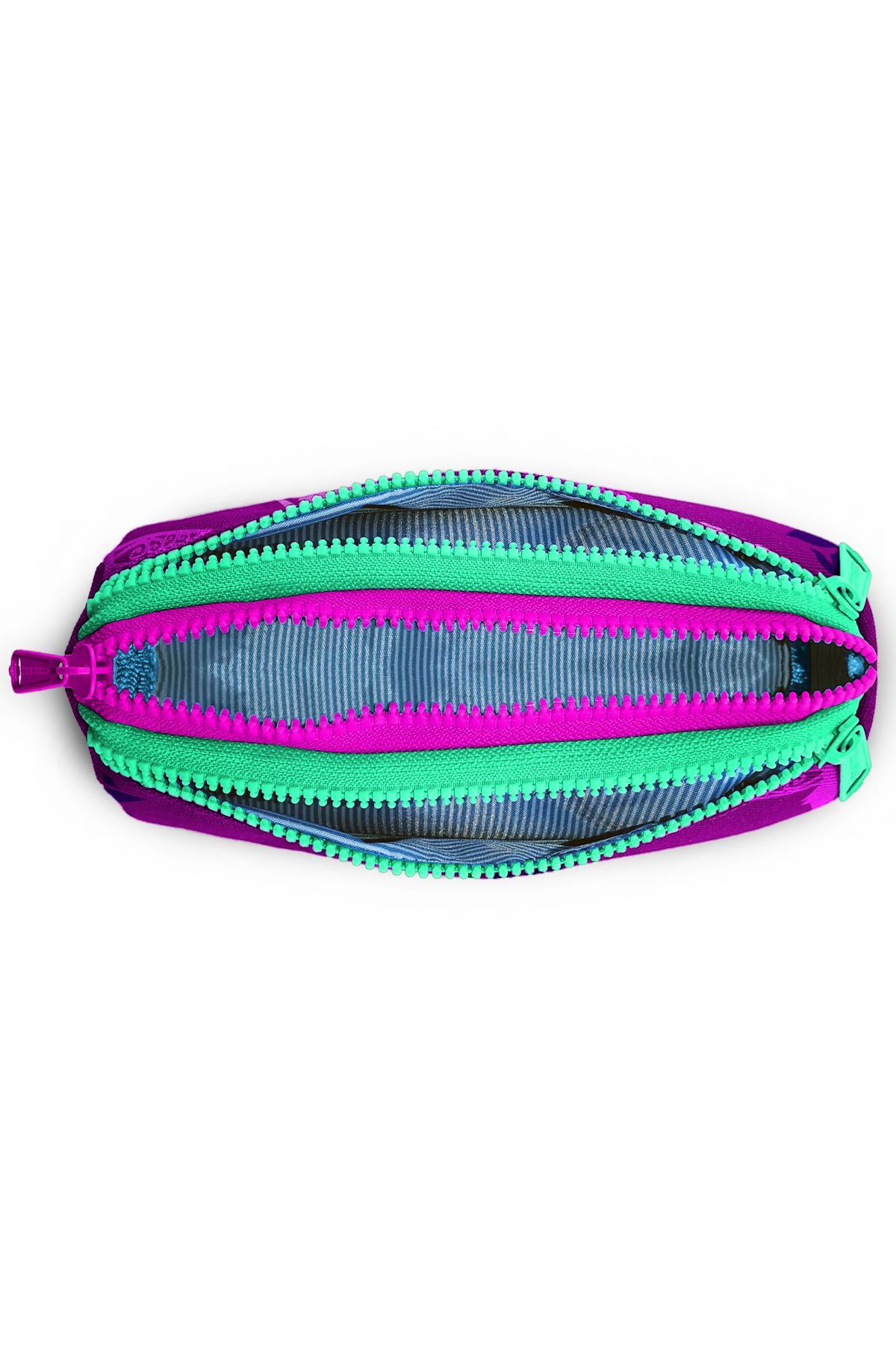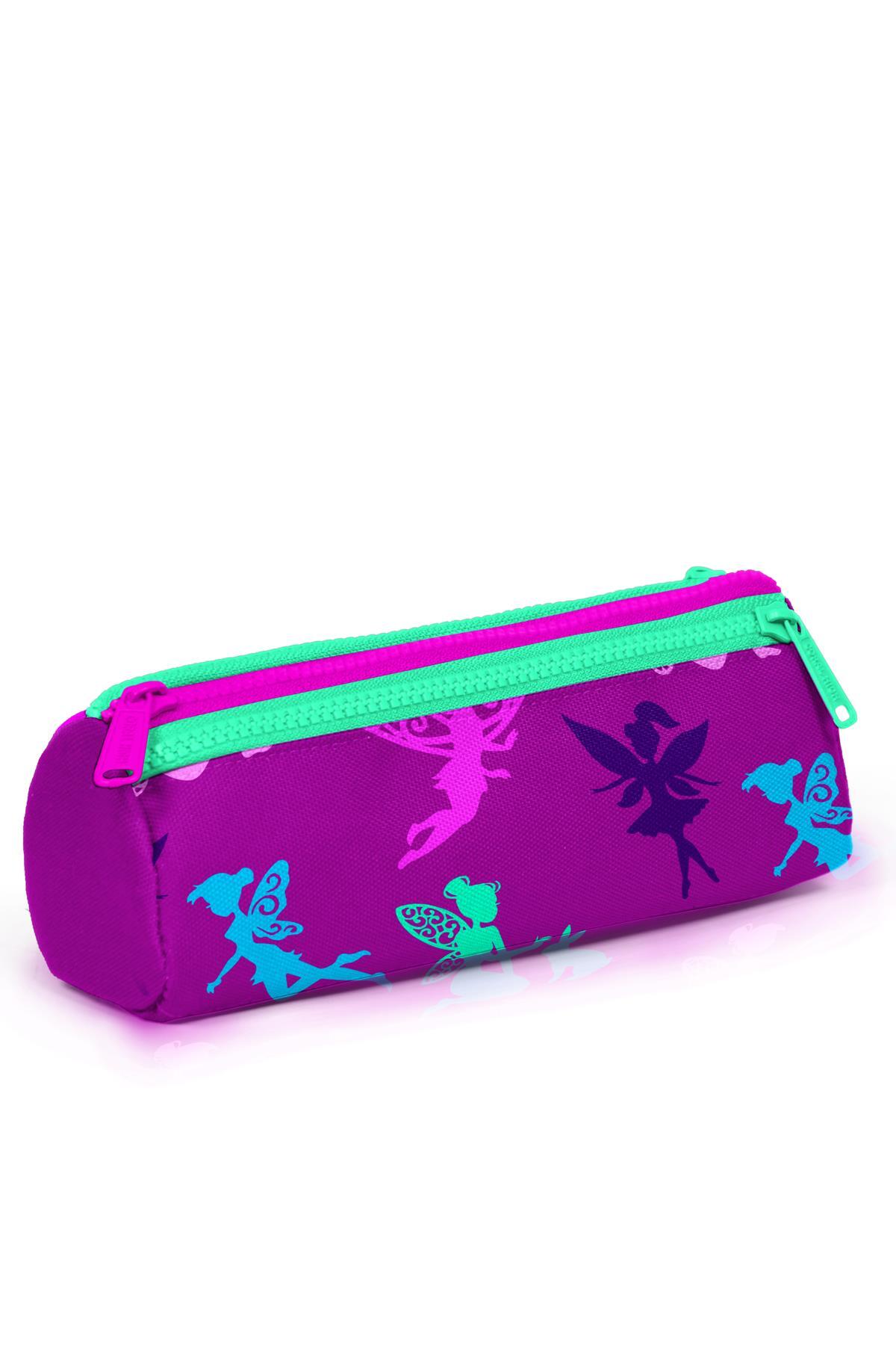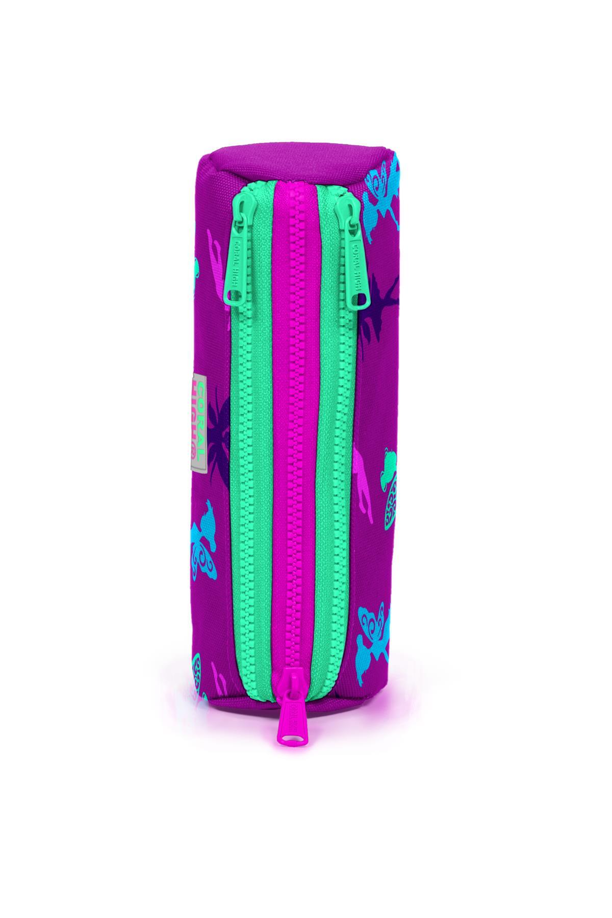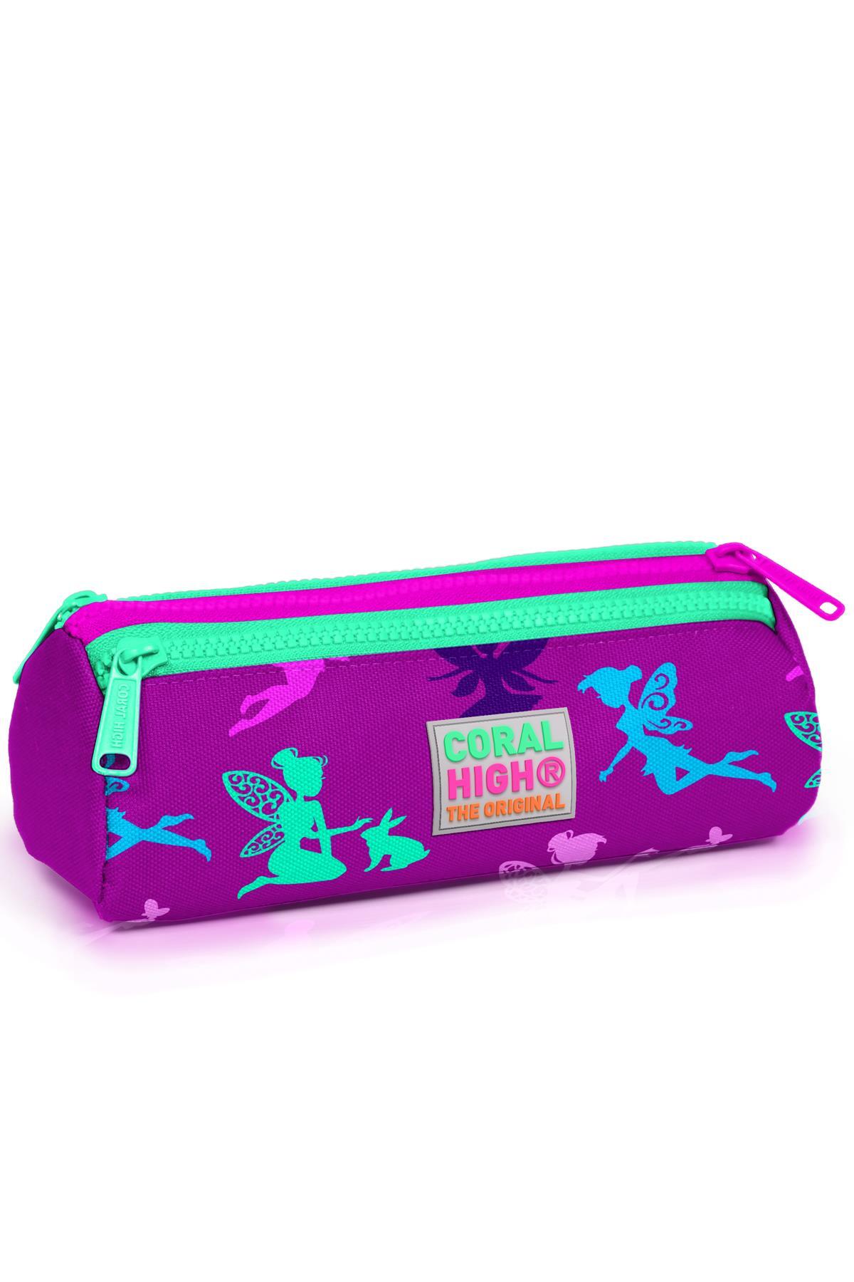 Coral High Kids Koyu Pembe Su Yeşili Peri Desenli Üç Bölmeli Kalem Çantası 22314