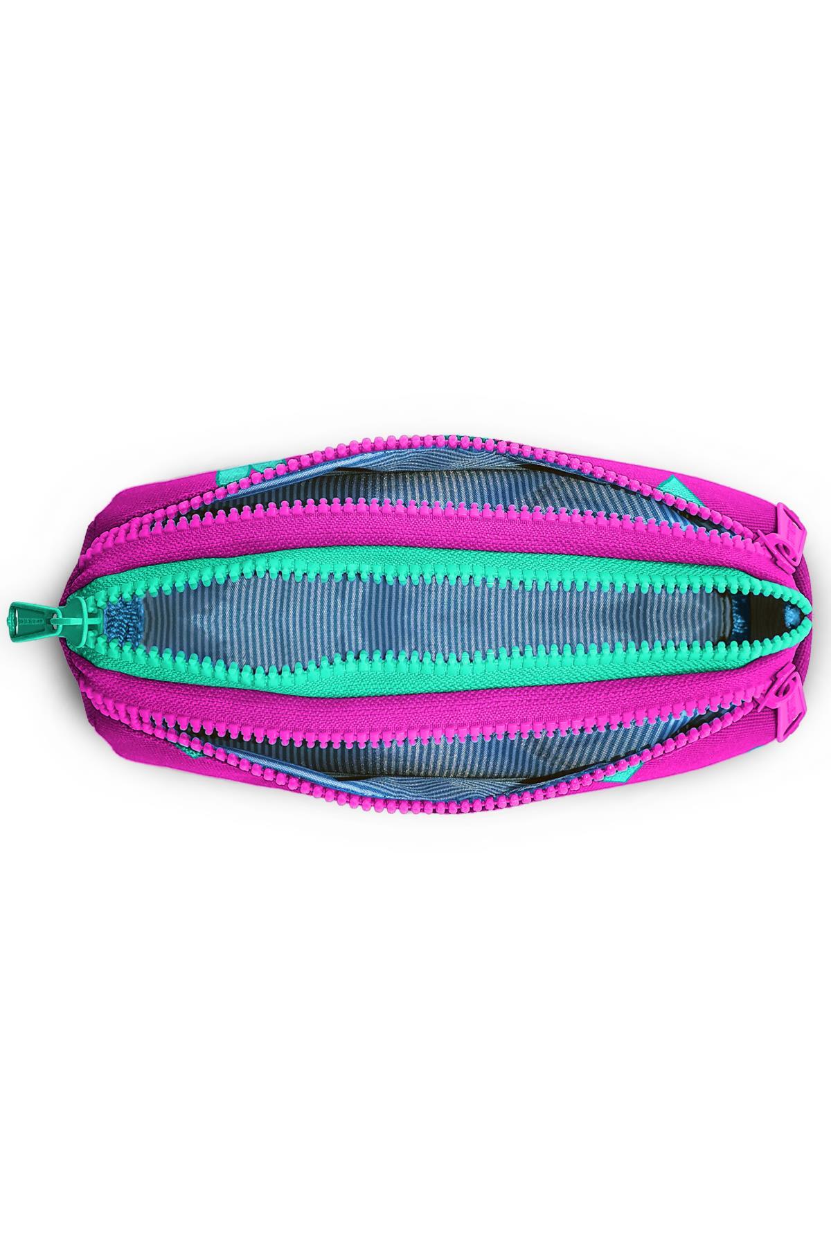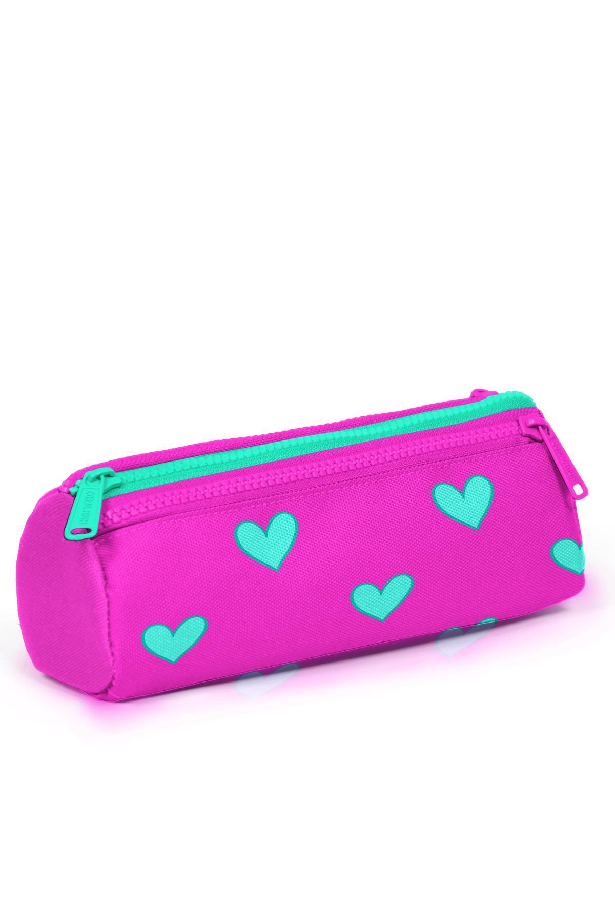 Coral High Kids Neon Pembe Su Yeşili Kalp Desenli Üç Bölmeli Kalem Çantası 22317