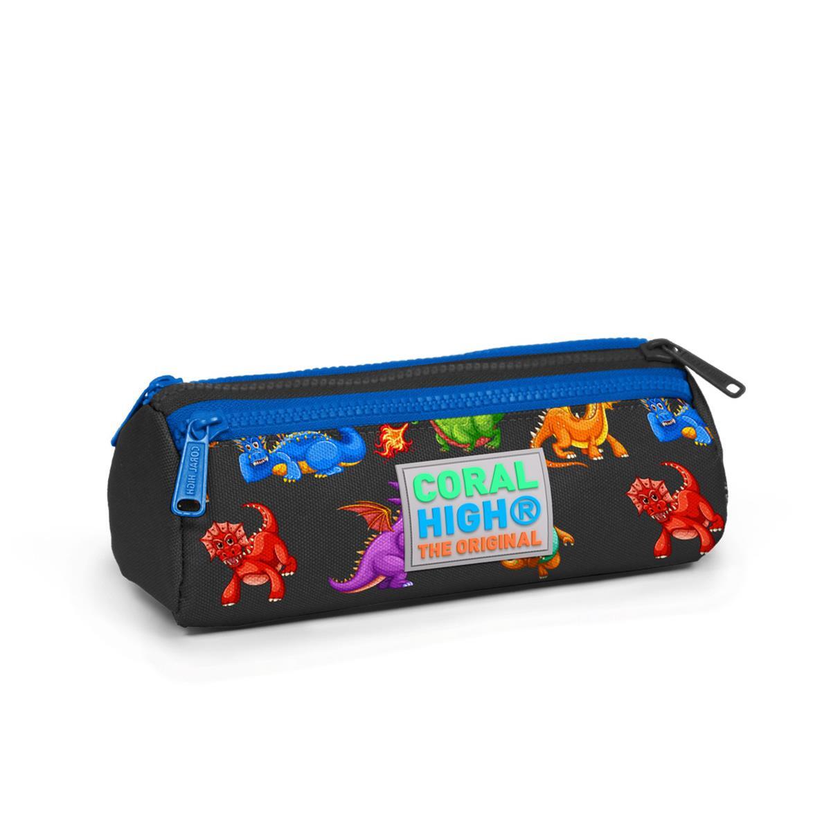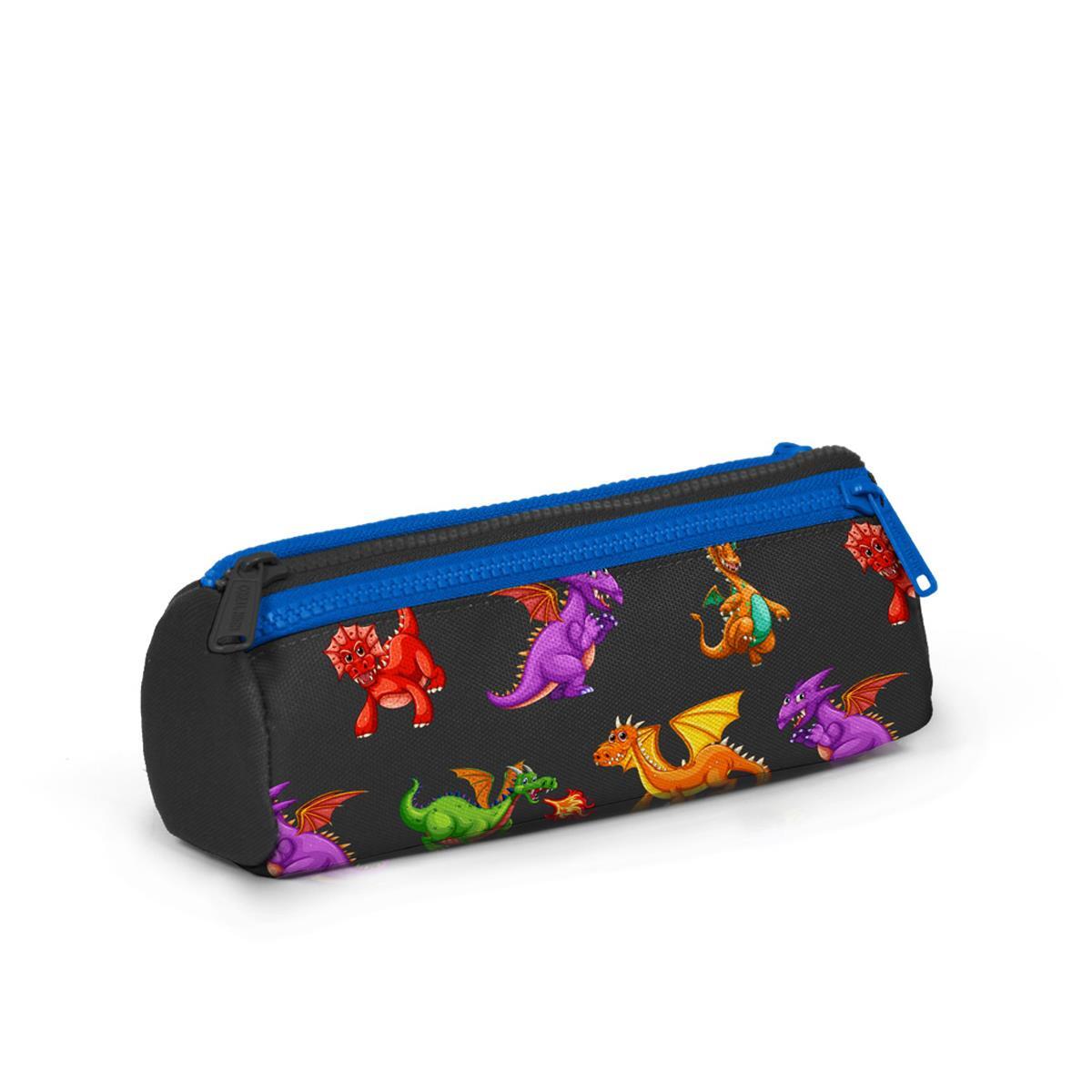 Üç bölmeli, fermuarlı kalem çantası.