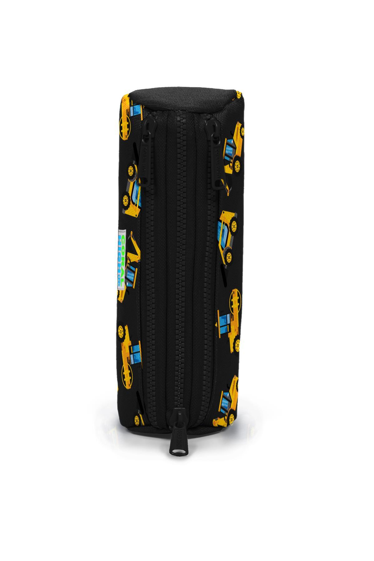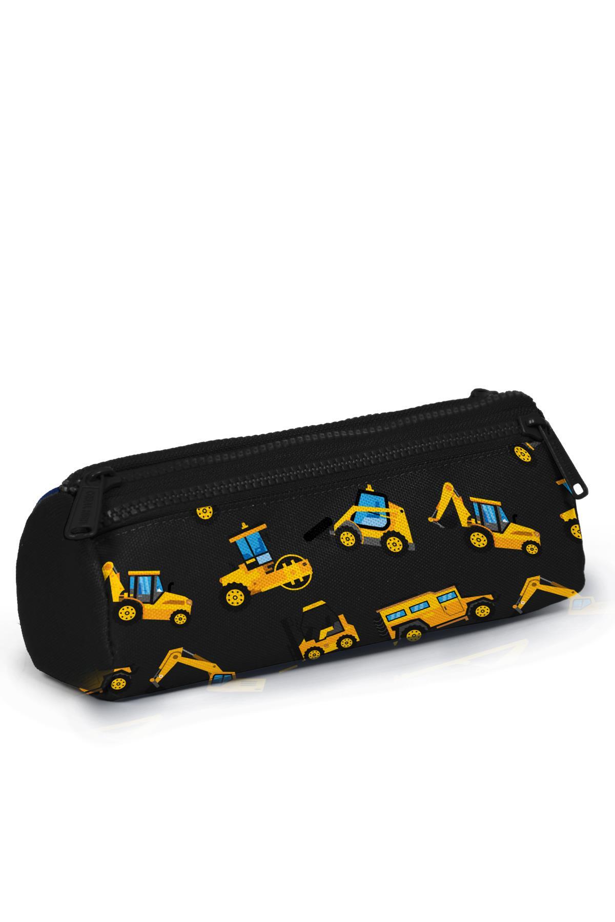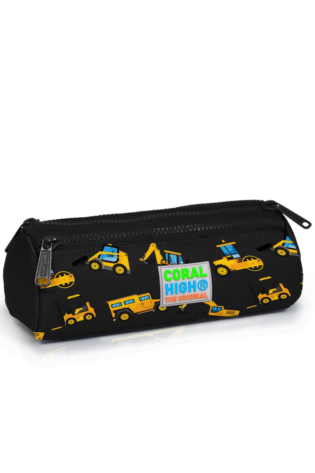 Coral High Kids Siyah Sarı İş Makinesi Desenli Üç Bölmeli Kalem Çantası 22328