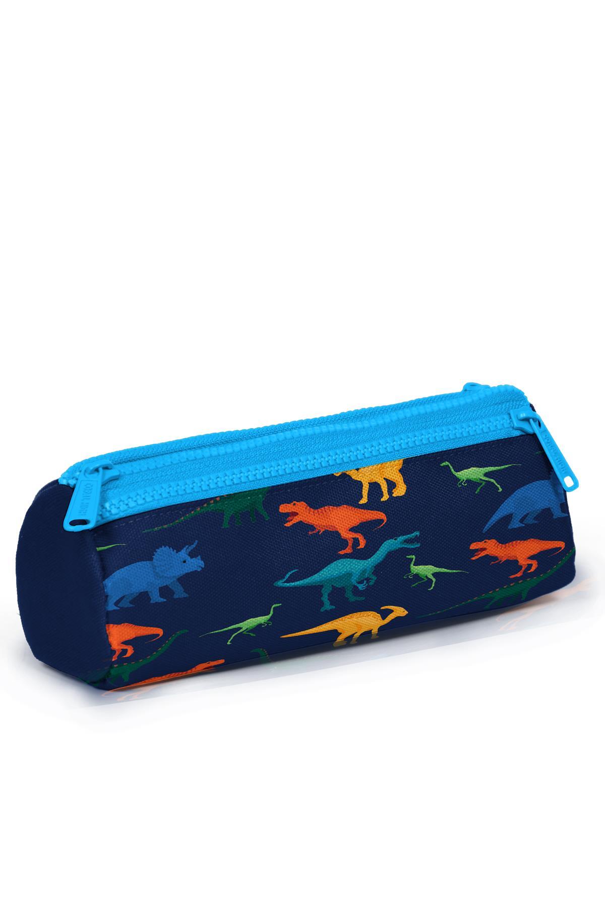 Üç bölmeli, fermuarlı kalem çantası.