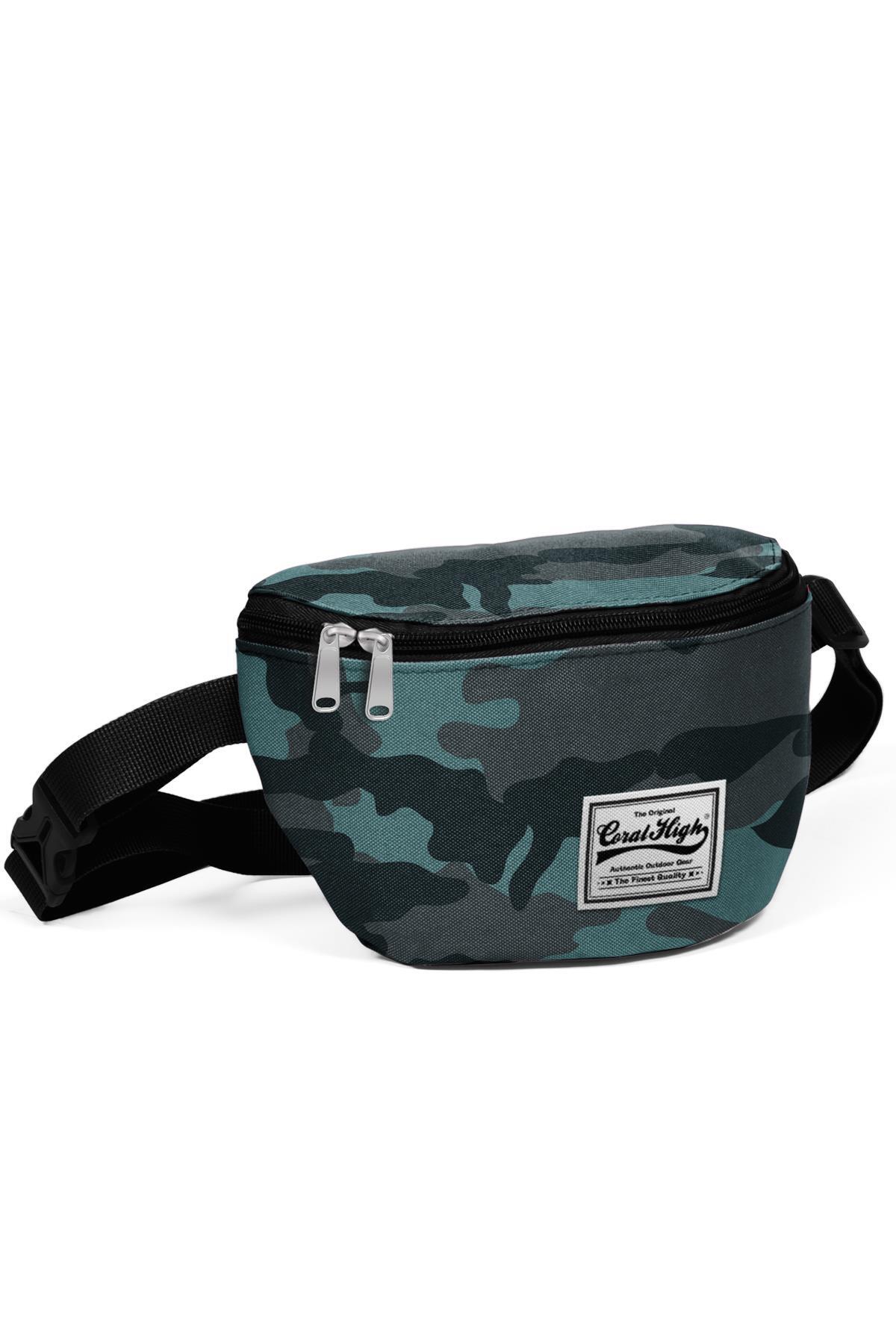 Çift bölmeli, fermuarlı bel çantası.