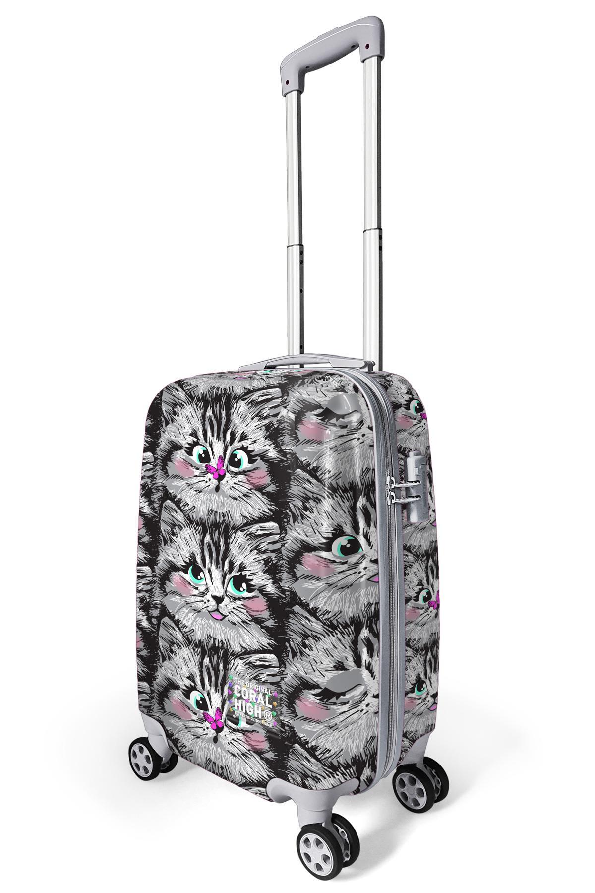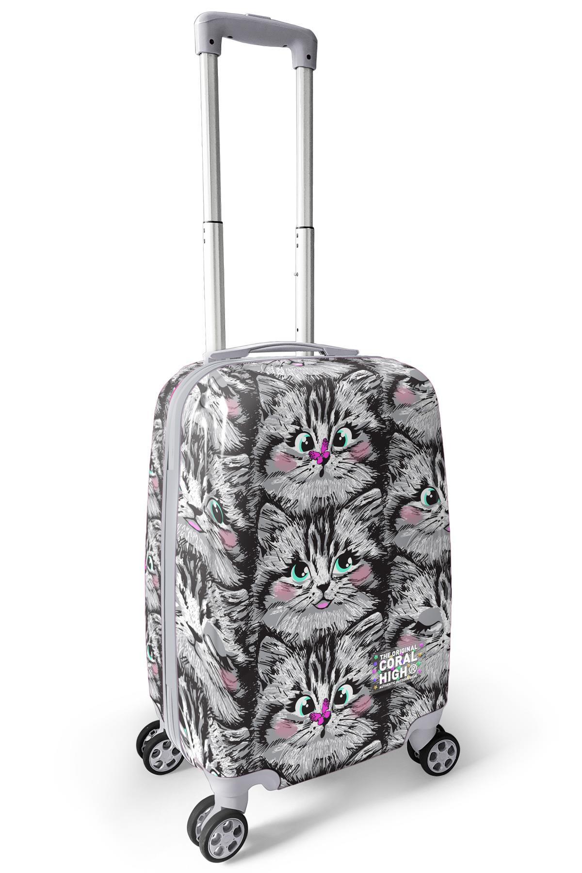 Coral High Kedi Desenli Kabin Boy Valiz (50cm) 16543
