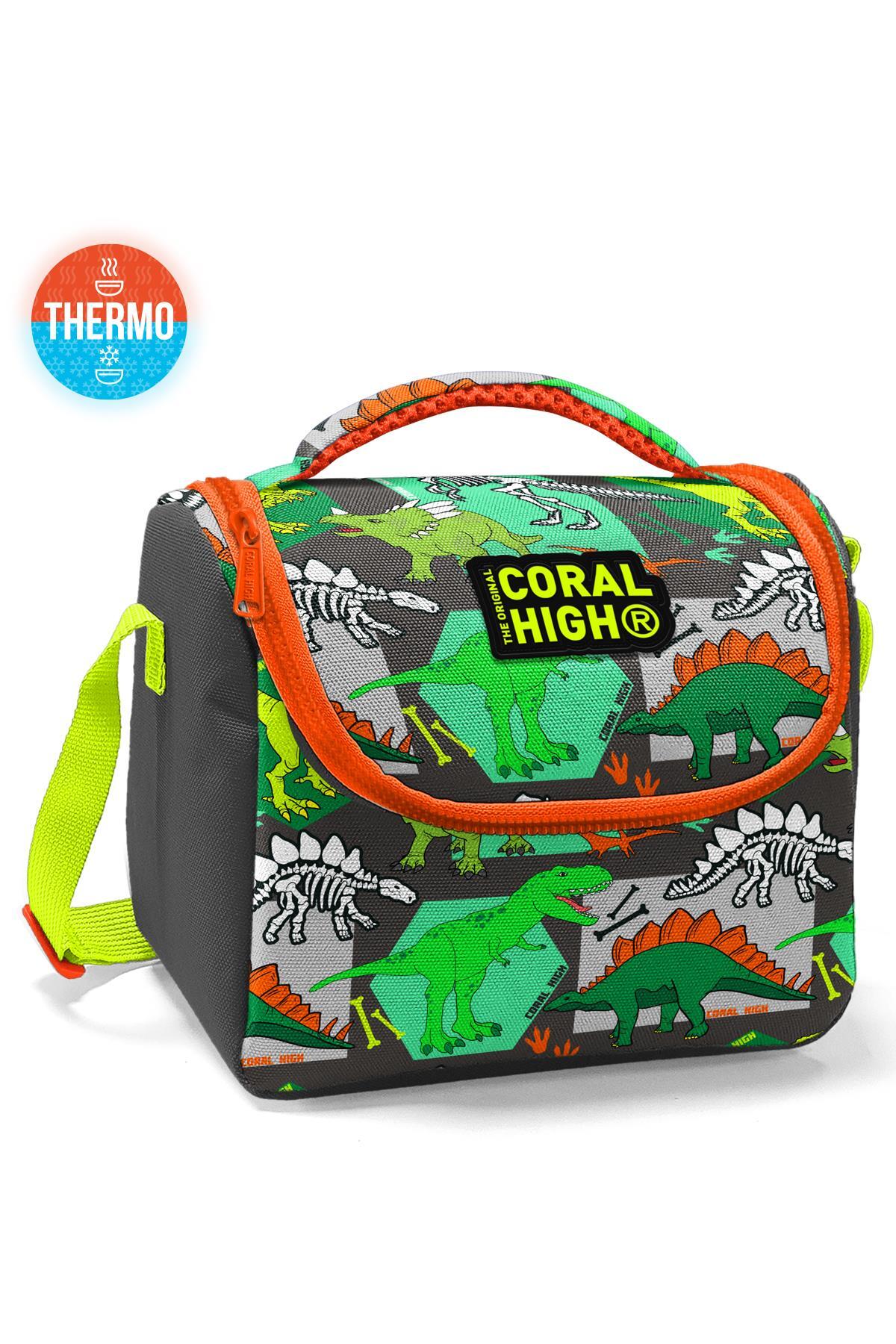 Coral High Kids Gri Yeşil Dinozor Desenli Thermo Beslenme Çantası 11832