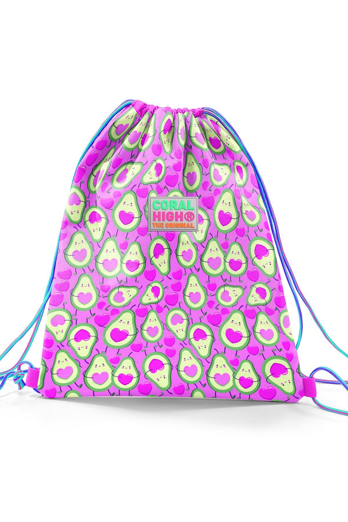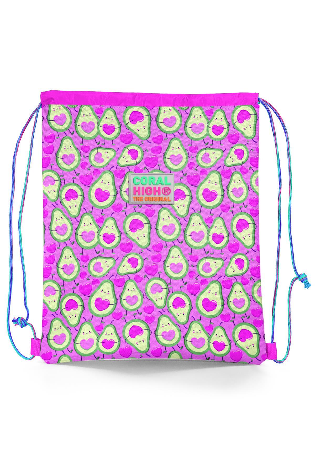 Coral High Kids Açık Pembe Su Yeşili Avokado Desenli İpli Büzgülü Sırt Çantası 22465