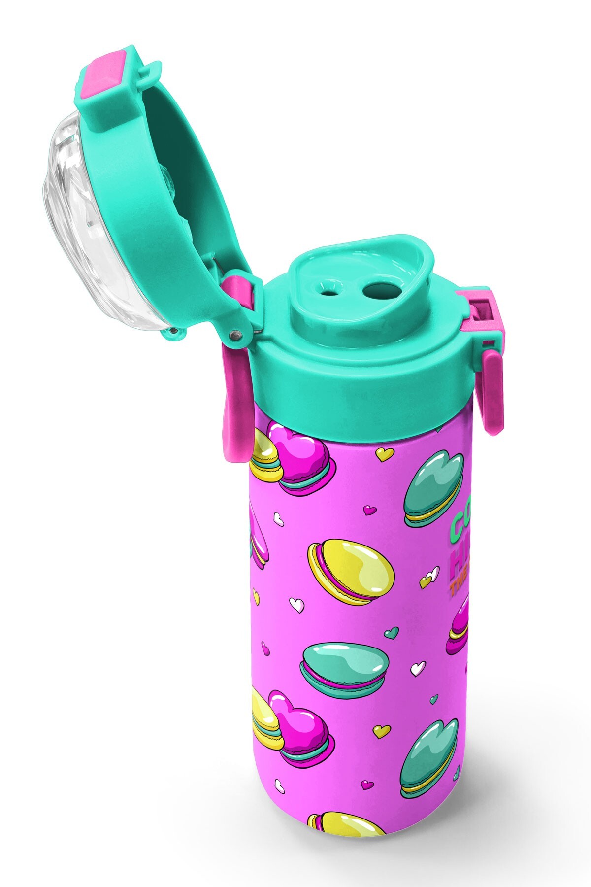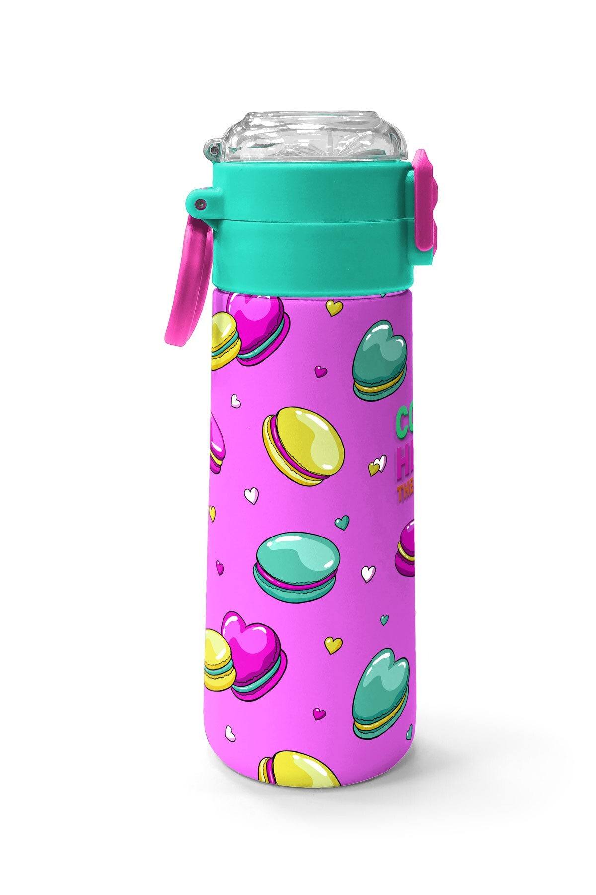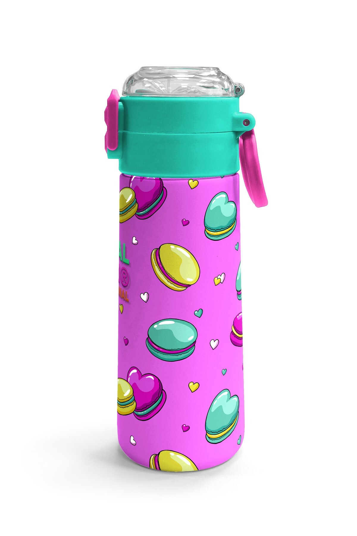 Coral High Kids Açık Pembe Su Yeşili Makaron Desenli Pipetli ve Direkt İçim Çelik Termos 500 ml 31912