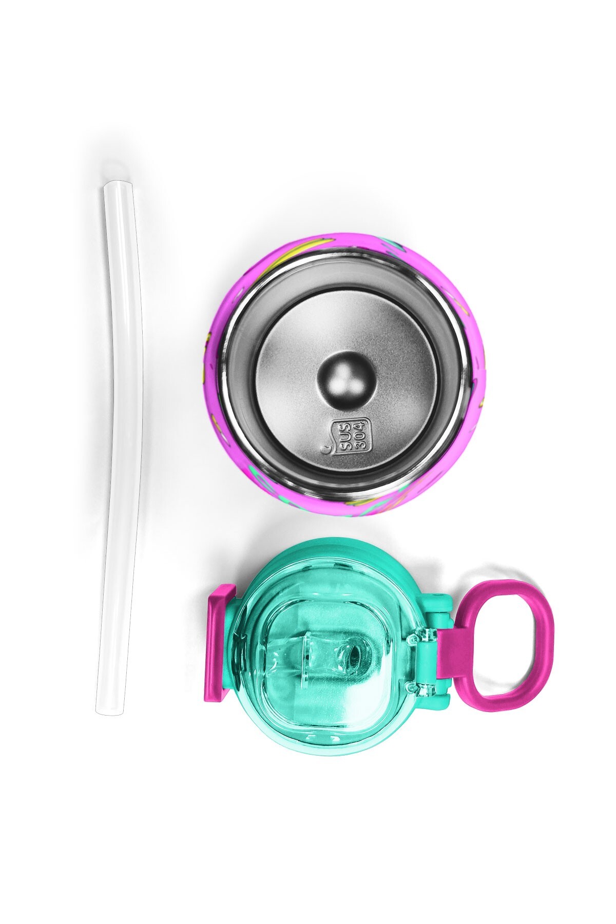 Coral High Kids Pembe Mor Fashion Girl Desenli Pipetli ve Direkt İçim Çelik Termos 500 ml 31956