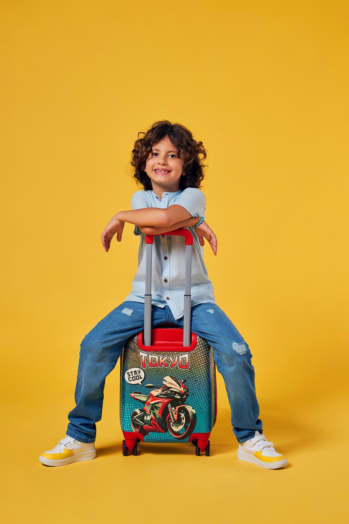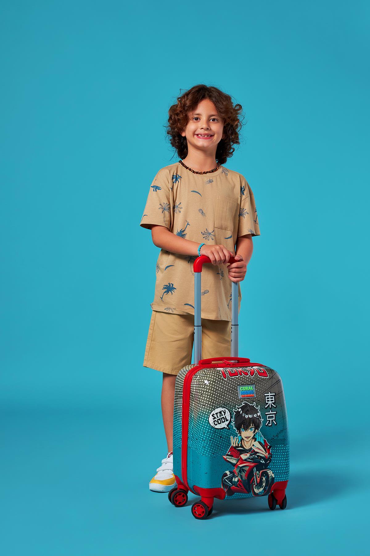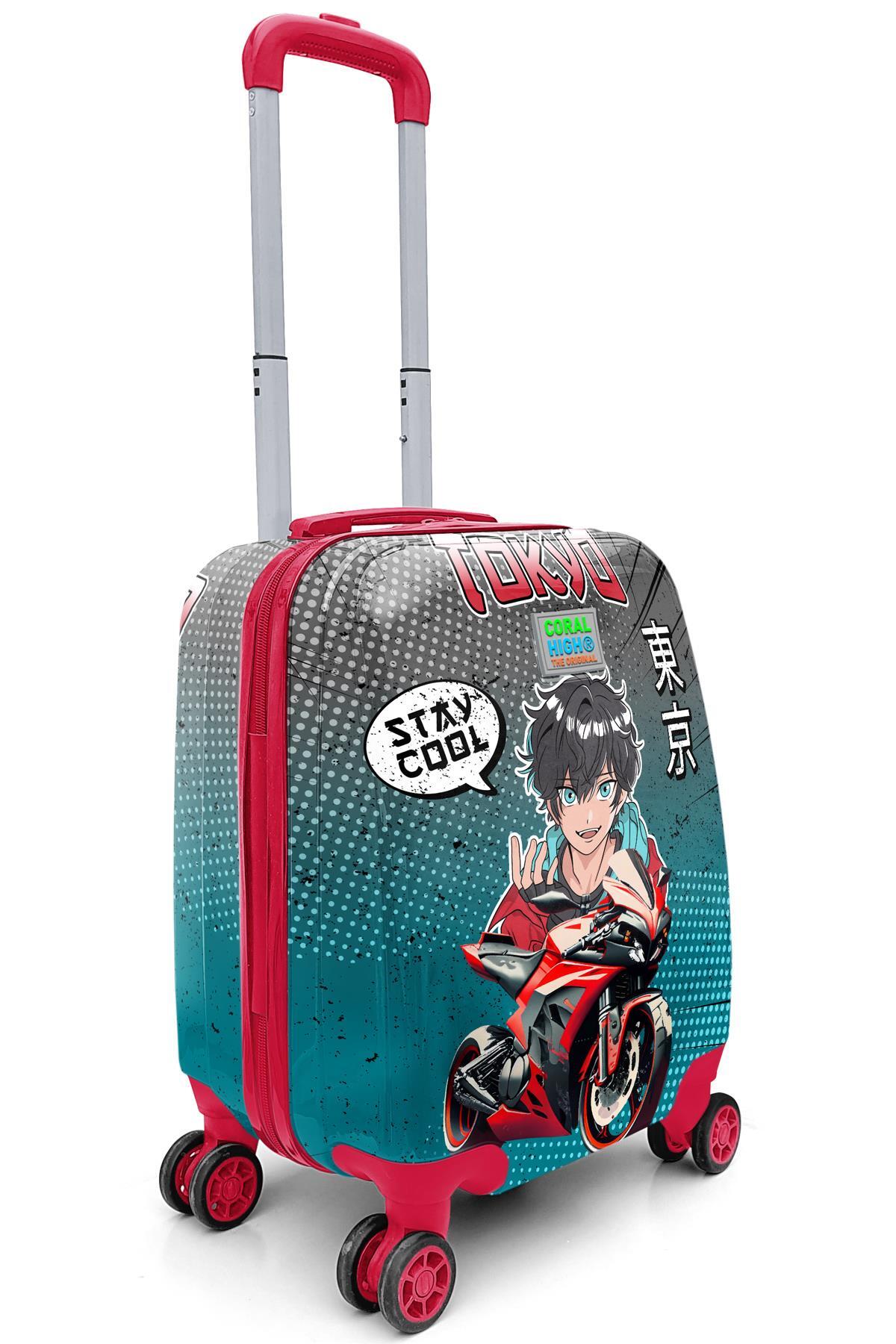 Coral High Kids Anime Motorsiklet Desenli Çocuk Valizi 16782