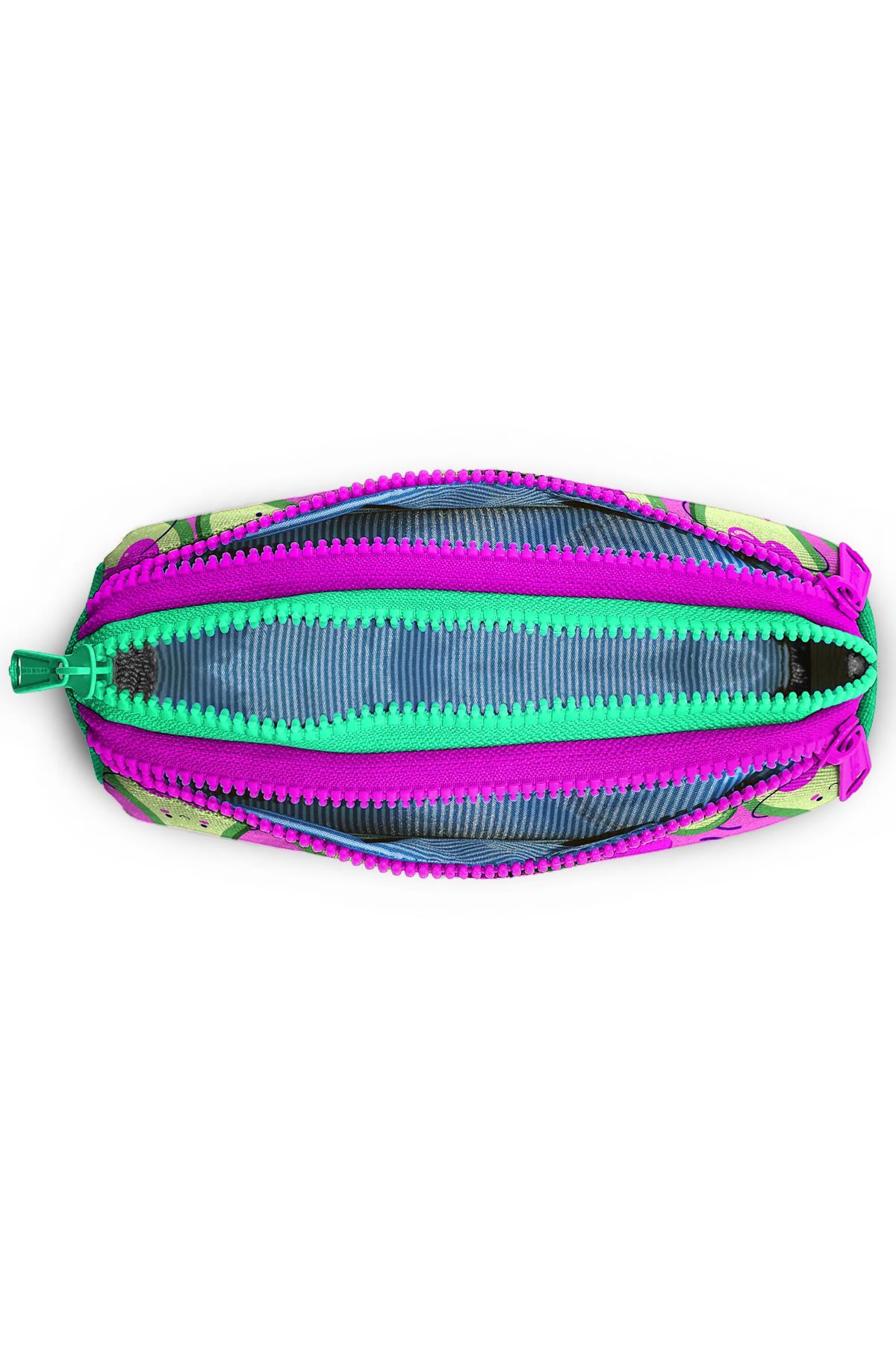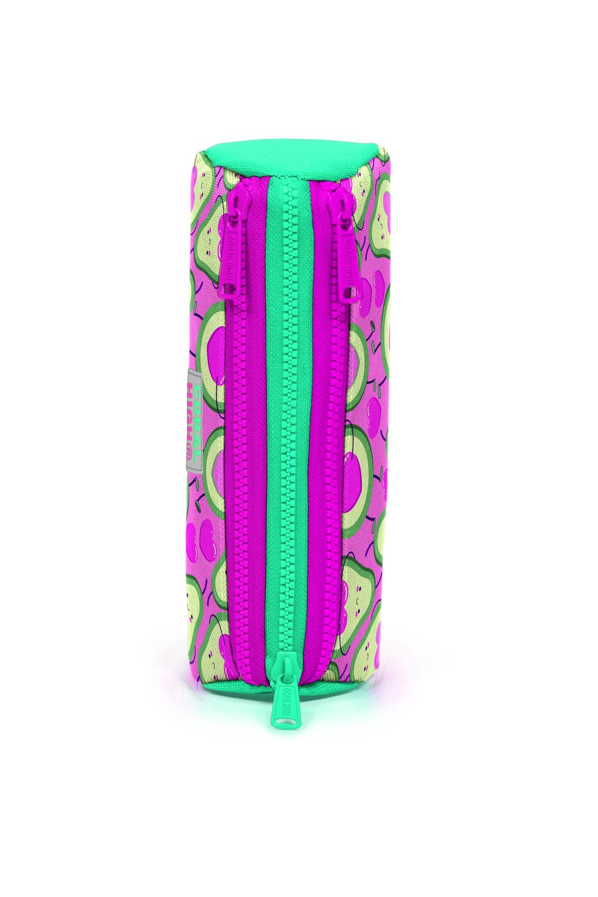 Coral High Kids Açık Pembe Su Yeşili Avakoda Desenli Üç Bölmeli Kalem Çantası 22009