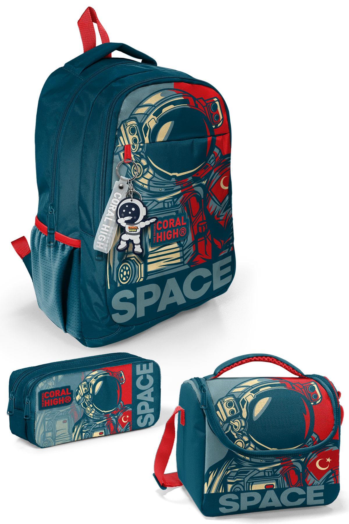 Coral High Kids Çivit Kırmızı Astronot Desenli 3’lü Okul Çanta Seti SET0114389