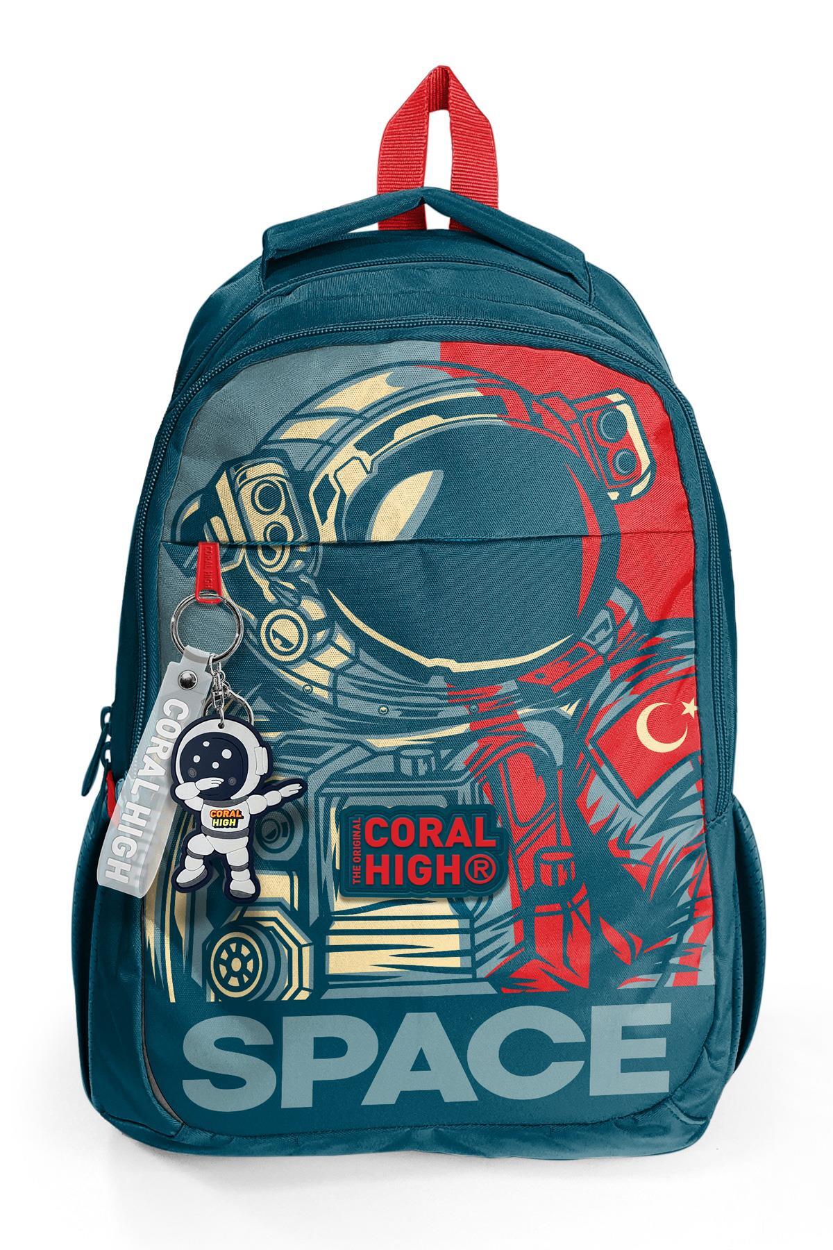 Coral High Kids Çivit Kırmızı Astronot Desenli Üç Bölmeli Okul Sırt Çantası 14389
