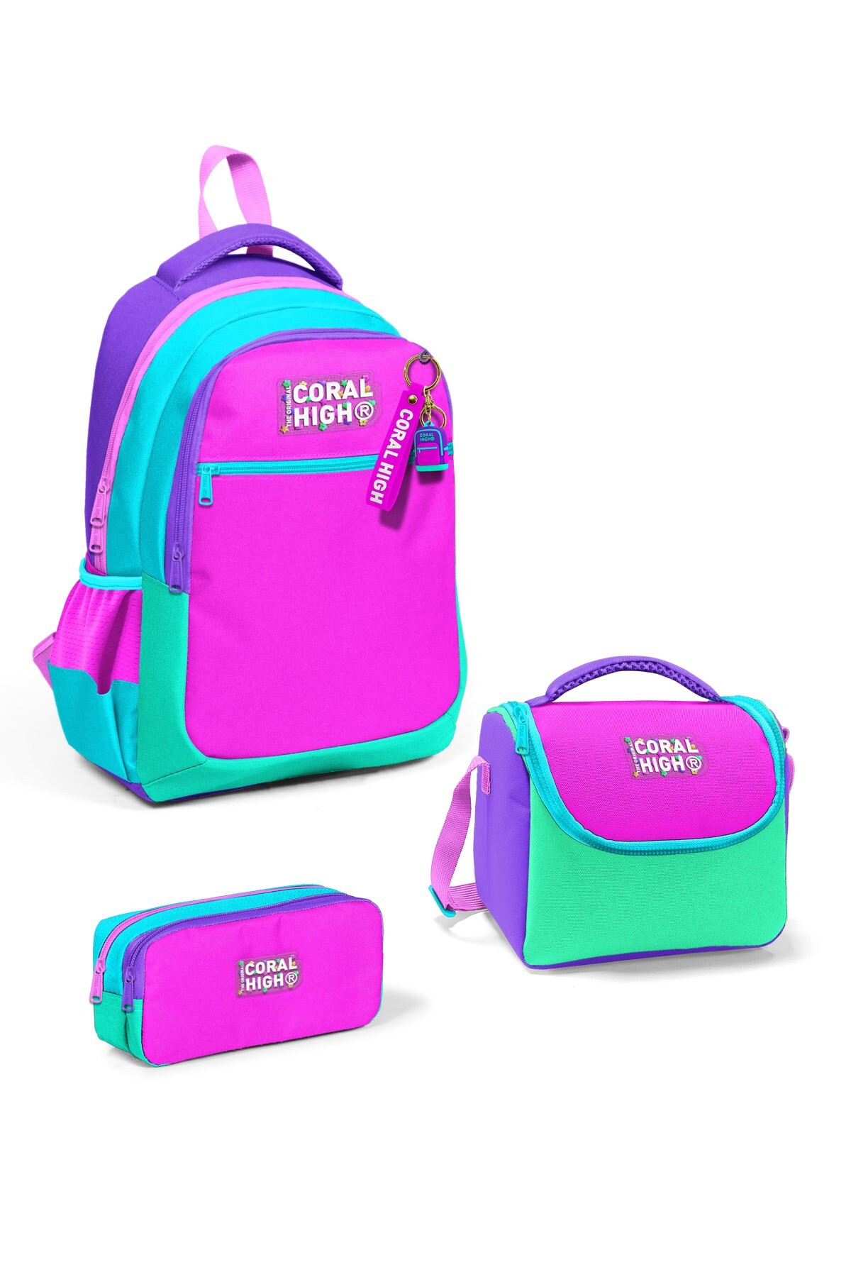 Çantalarımızın desen ve renk kombinasyonları ile üzerinde bulunan tüm tasarımları kendi tesislerimizde üretilmektedir ve tüm kullanım hakları hiçbir istisna bulunmaksızın Coral High'a aittir.
