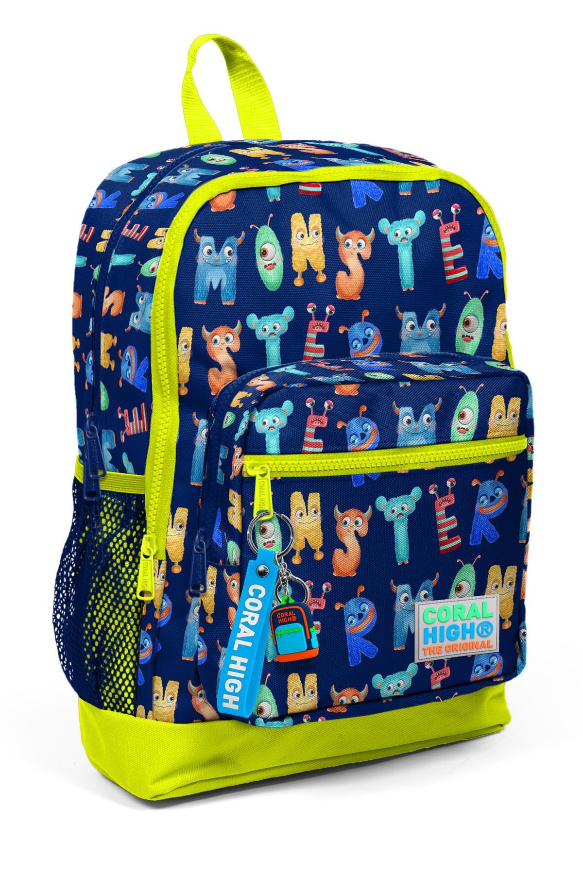 Coral High Kids Lacivert Neon Sarı Monster Desenli Dört Bölmeli Okul Sırt Çantası 23726