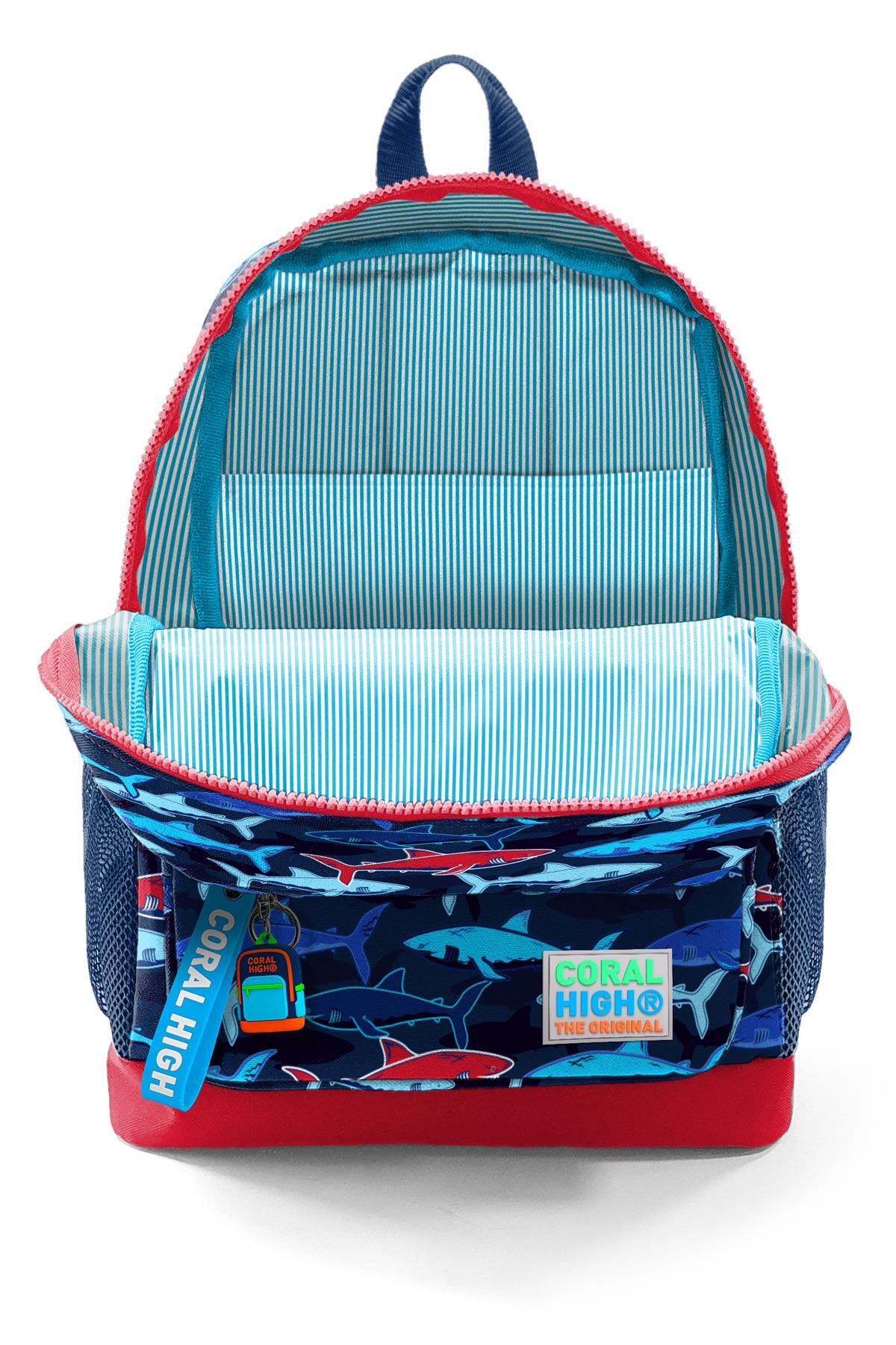 Coral High Kids Lacivert Kırmızı Köpek Balığı Desenli Dört Bölmeli Okul Sırt Çantası 23718