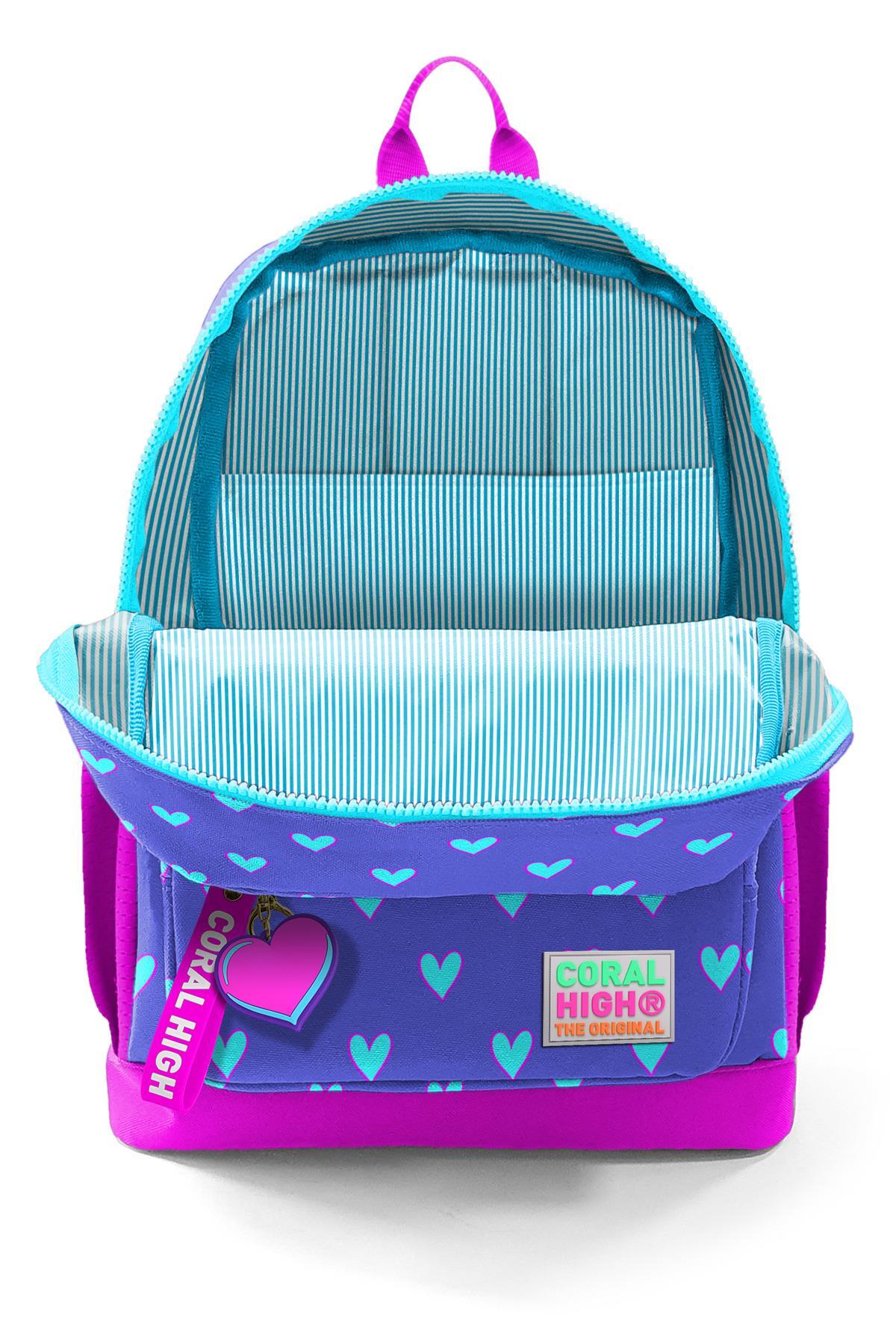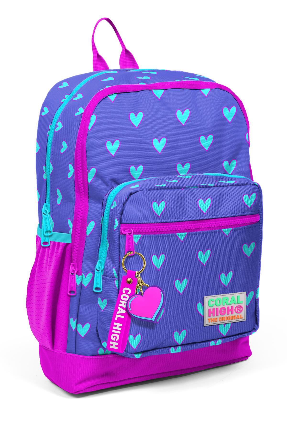 Coral High Kids Lavanta Pembe Kalp Desenli Dört Bölmeli Okul Sırt Çantası 23706