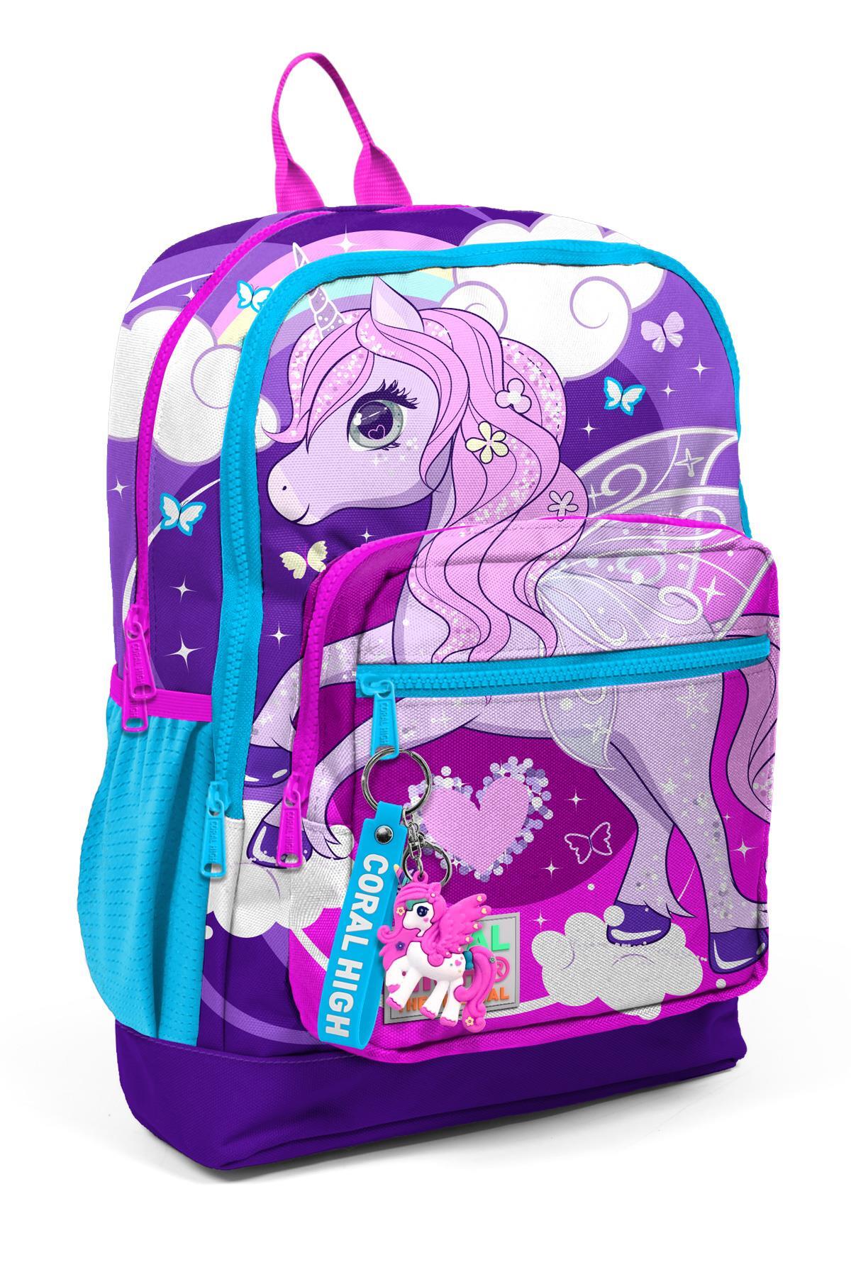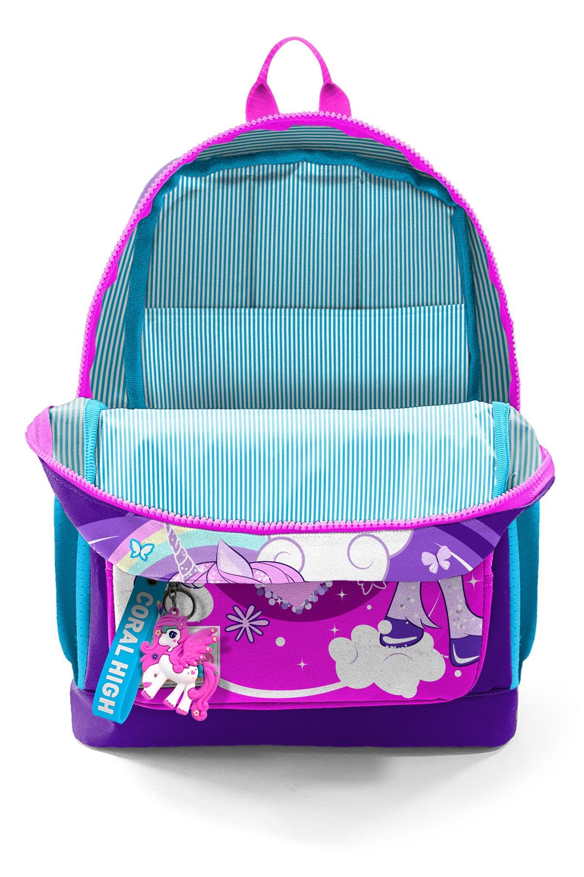 Coral High Kids Mor Pembe Unicorn Desenli Dört Bölmeli Okul Sırt Çantası 23708