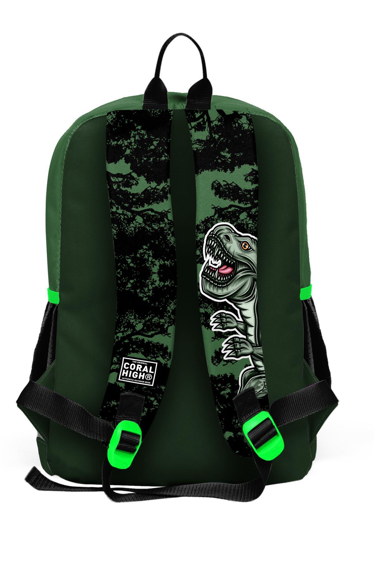 Coral High Kids Koyu Yeşil SiyahDinozor Desenli Dört Bölmeli Okul Sırt Çantası 23725