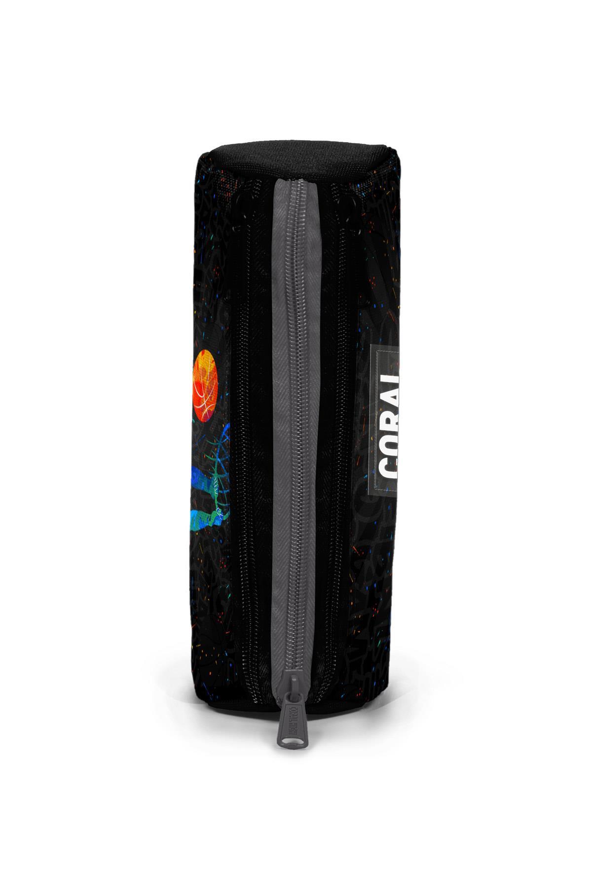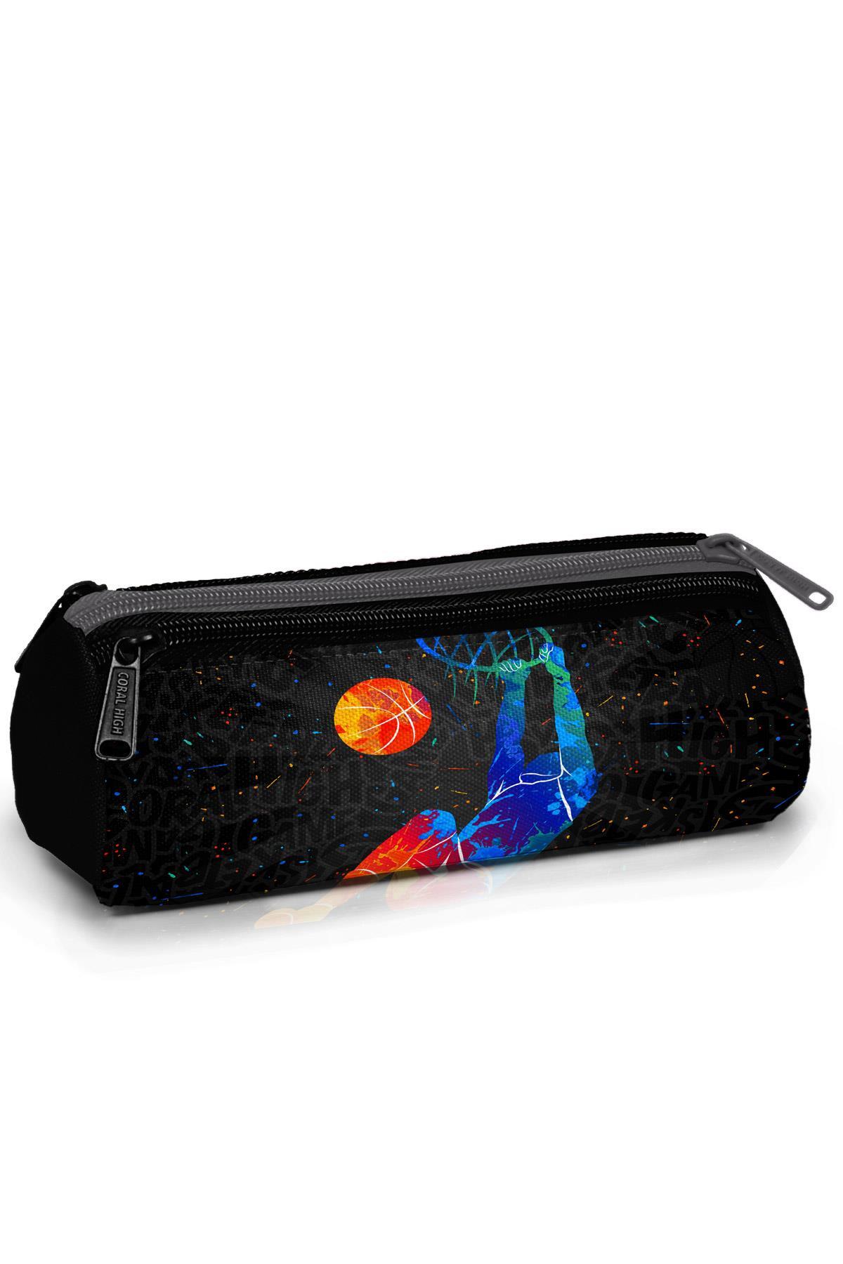 Coral High Kids Gri Basketbol Desenli Üç Bölmeli Kalem Çantası 11170