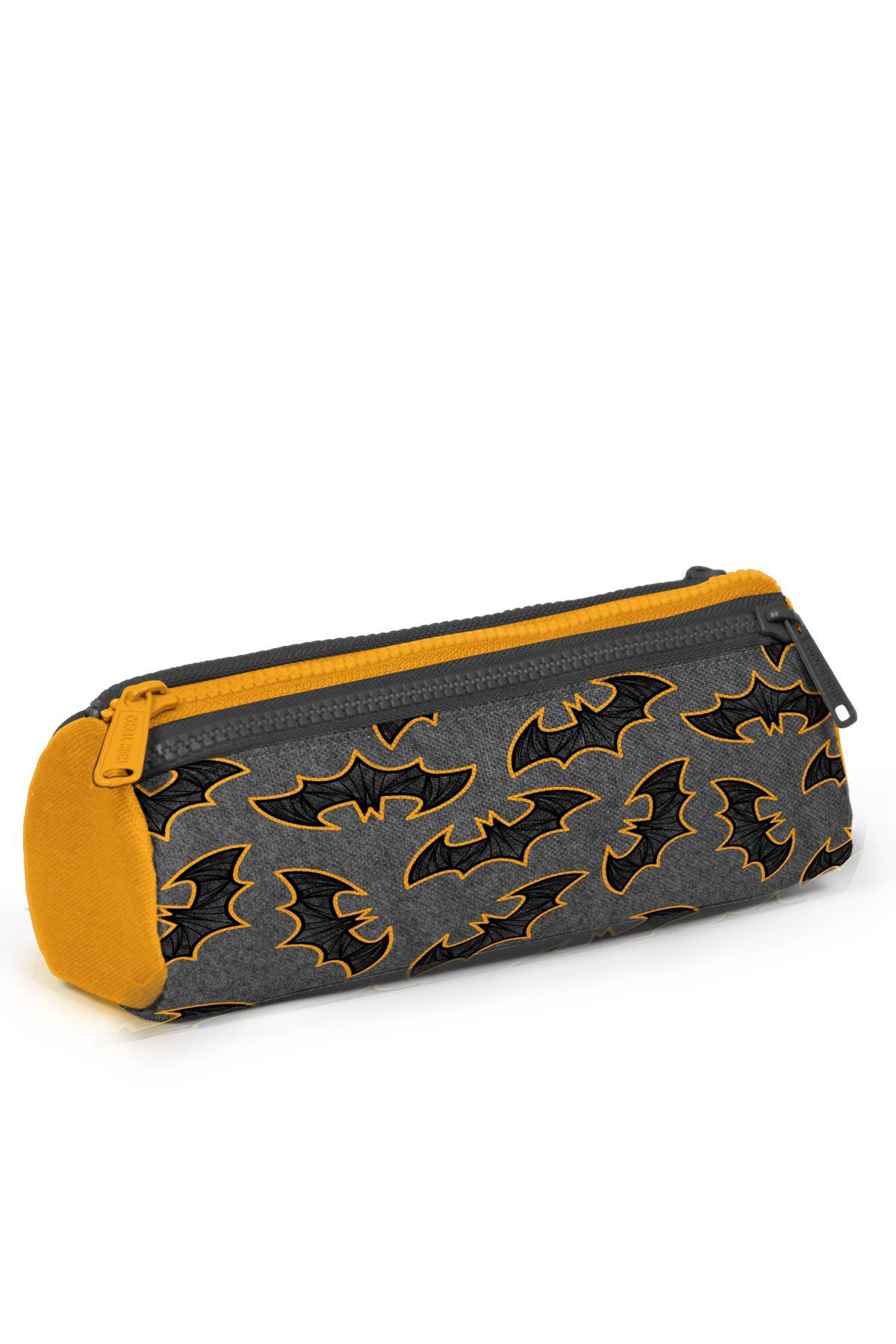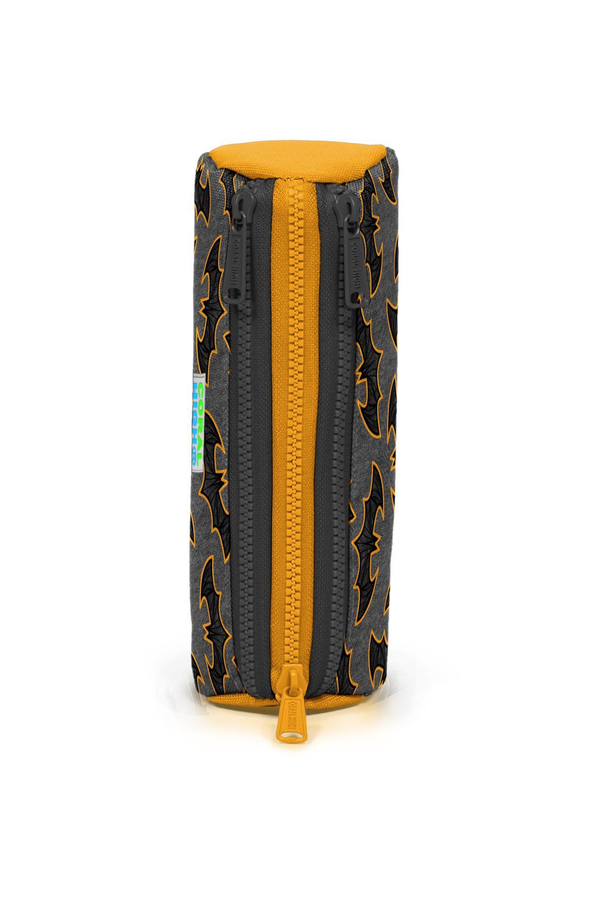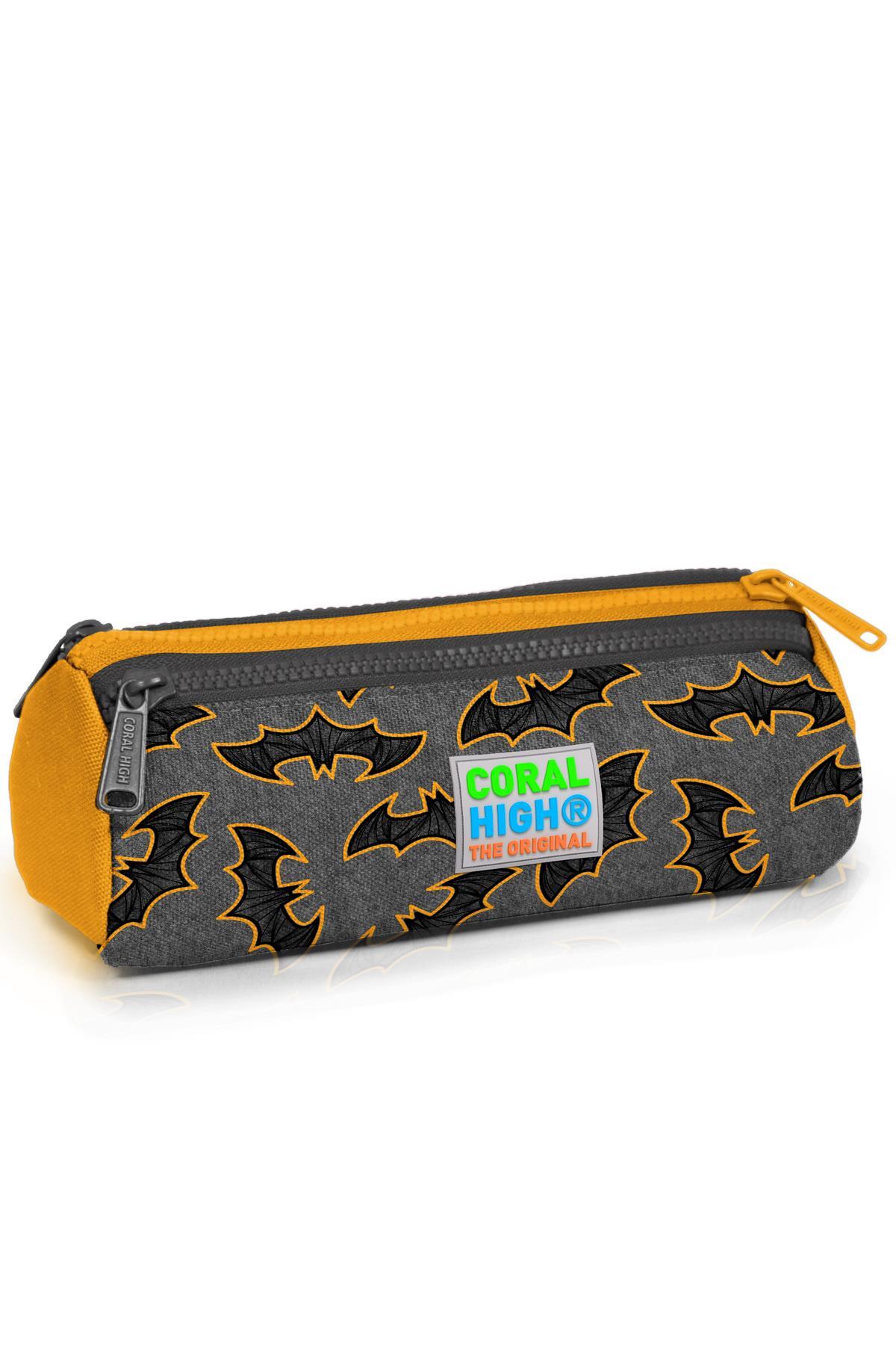Coral High Kids Koyu Gri Hardal Yarasa Desenli Üç Bölmeli Kalem Çantası 22021