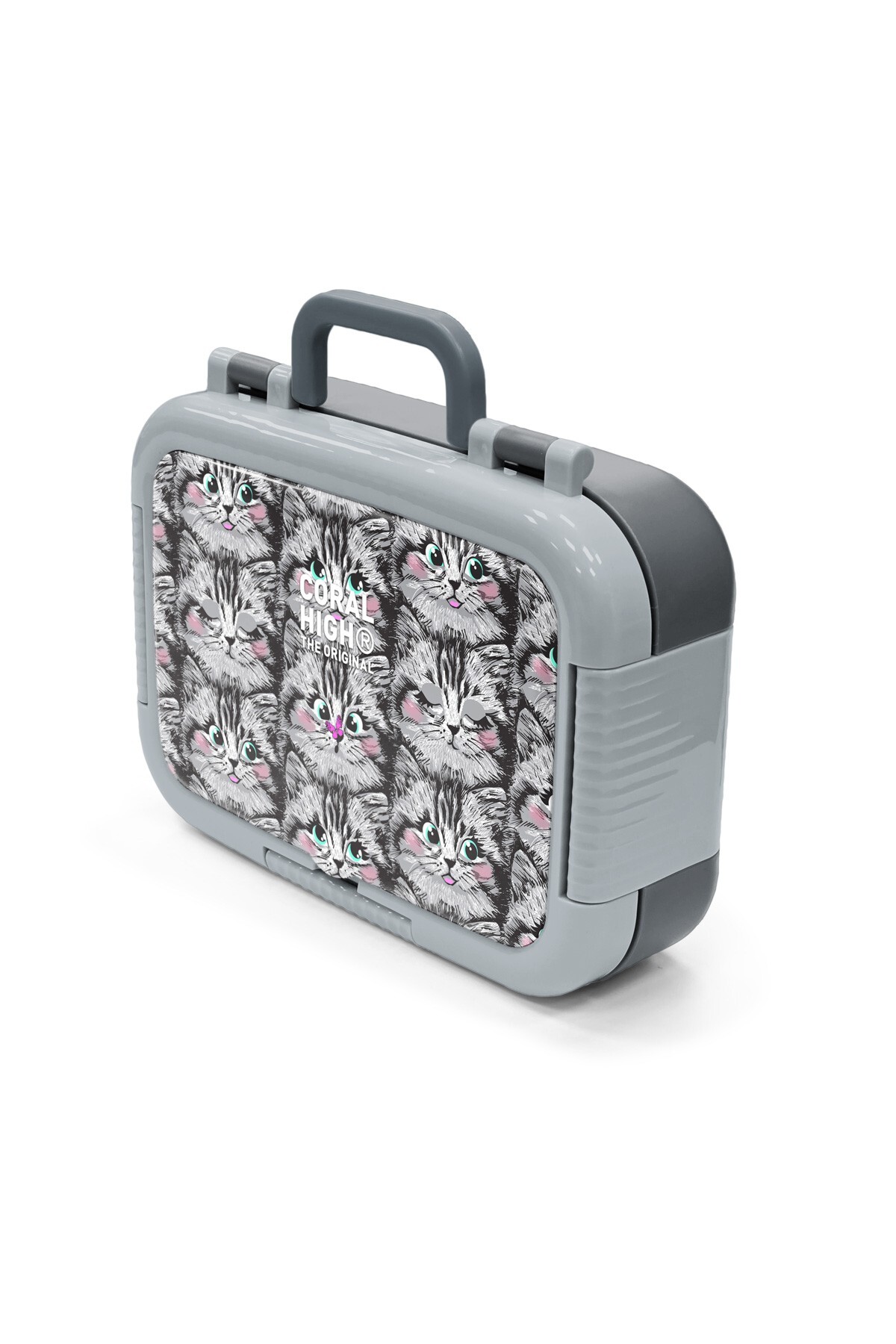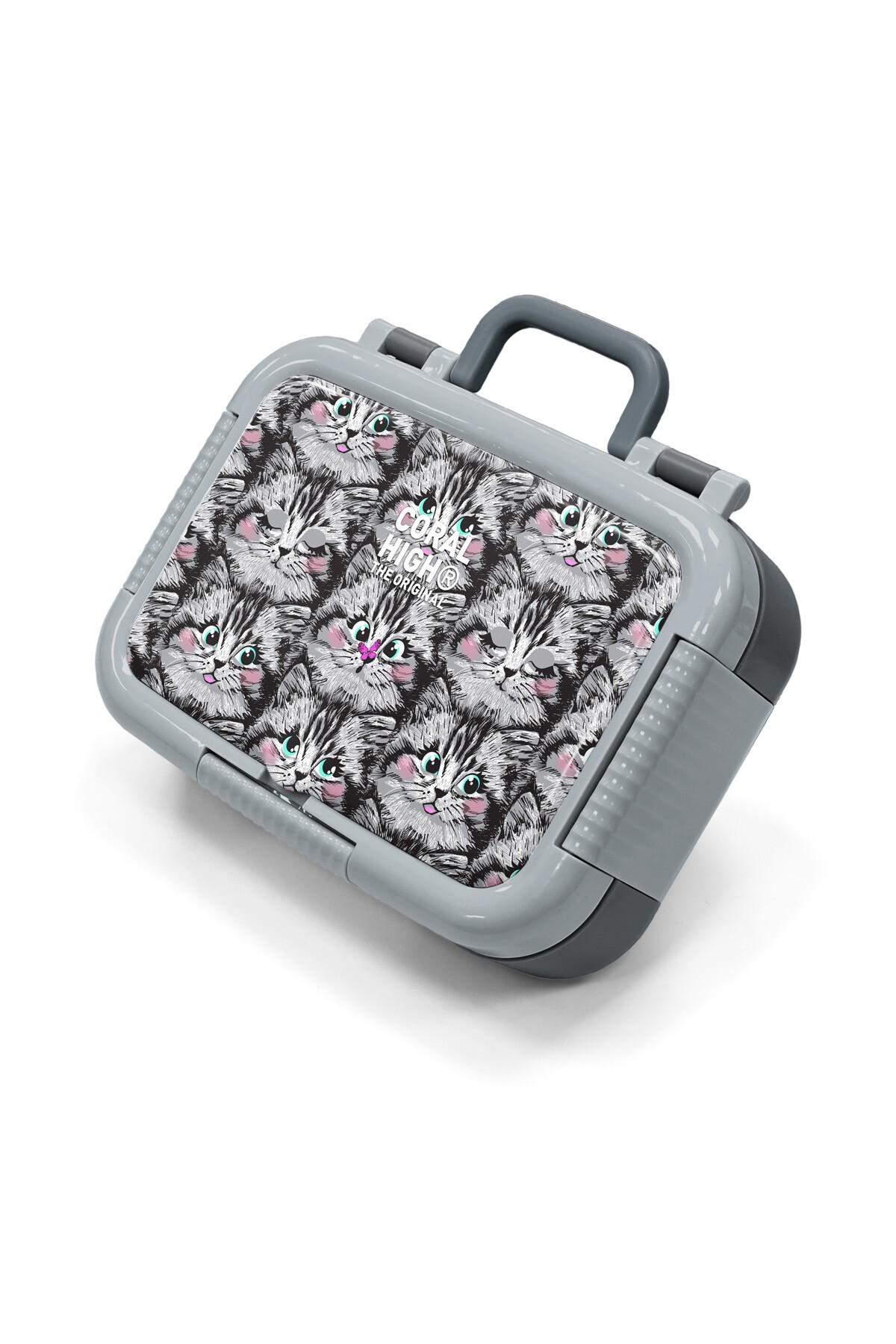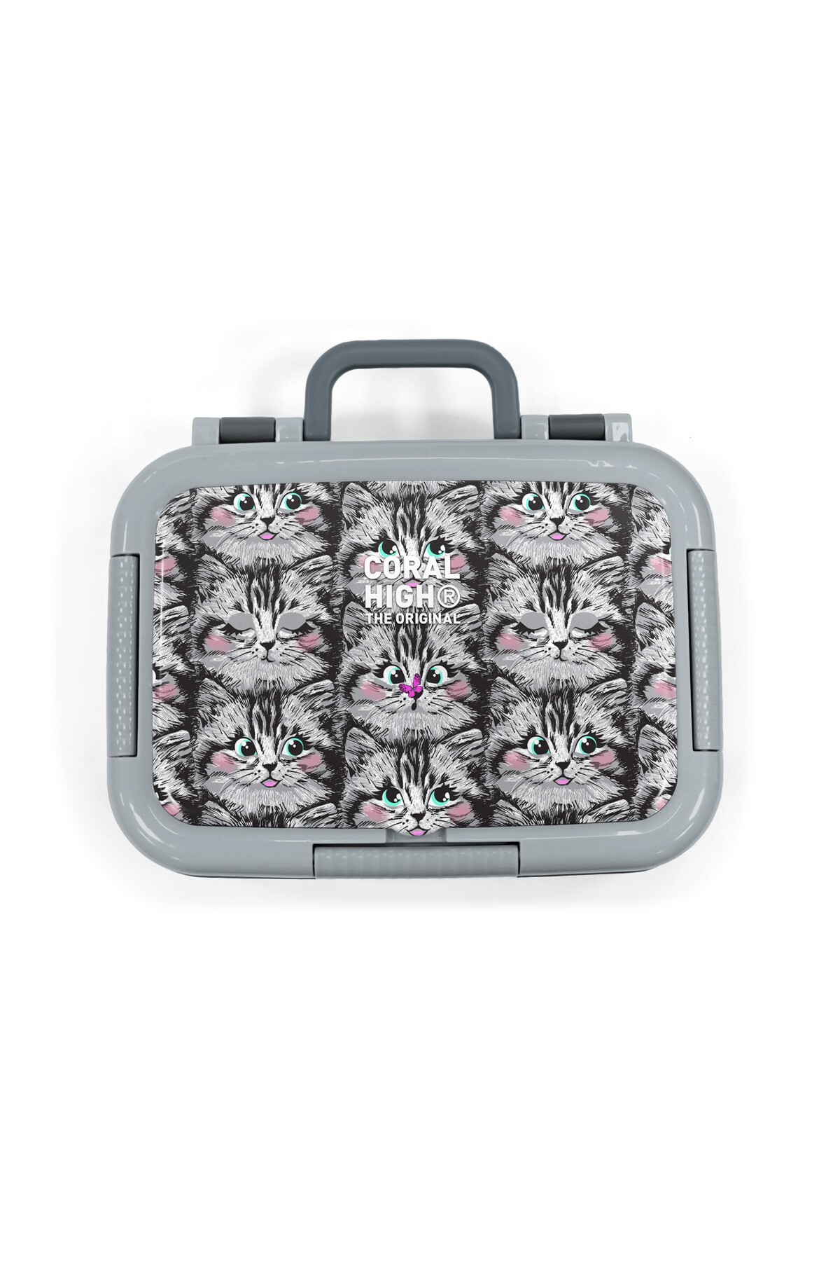 Coral High Kids Gri Kedi Desenli Paslanmaz Çelik Beslenme Kabı 39172