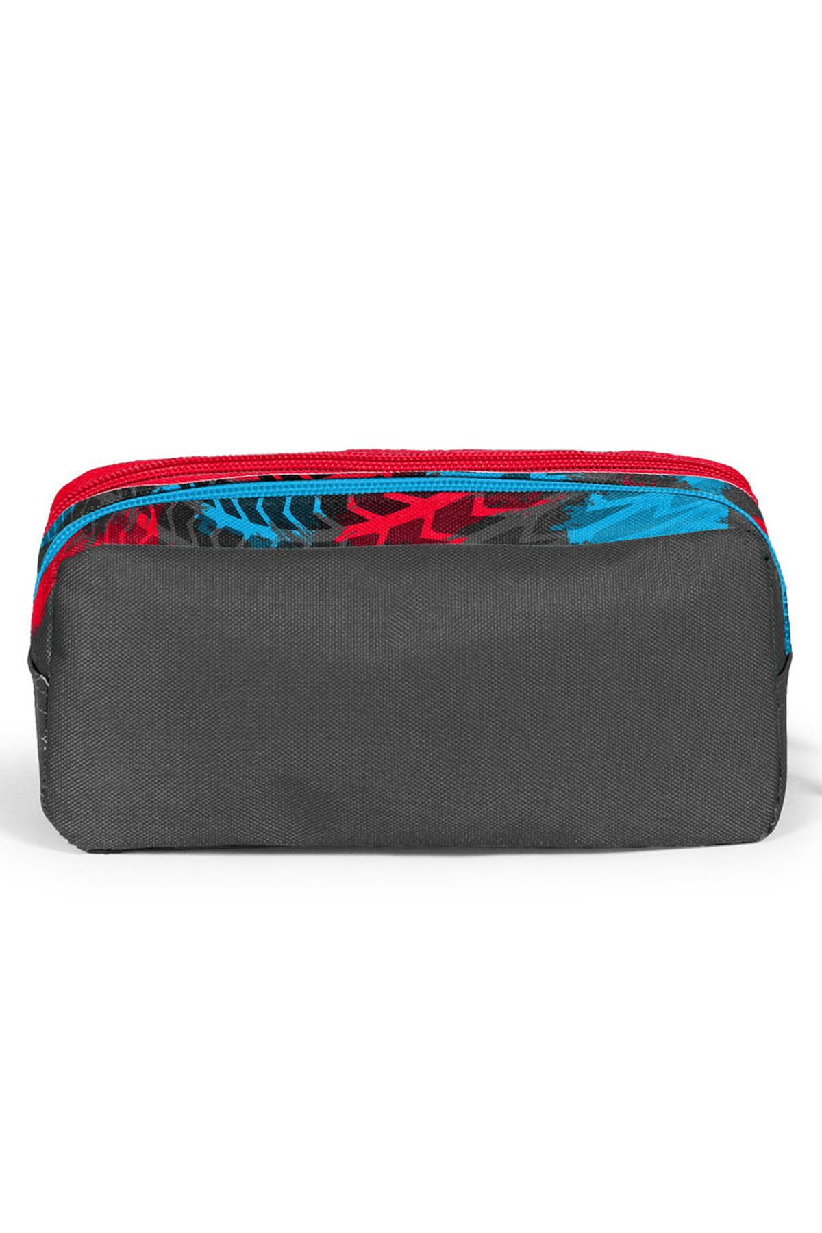 Coral High Kids Gri Mavi Yarış Arabası Desenli İki Bölmeli Kalem Çantası 12085