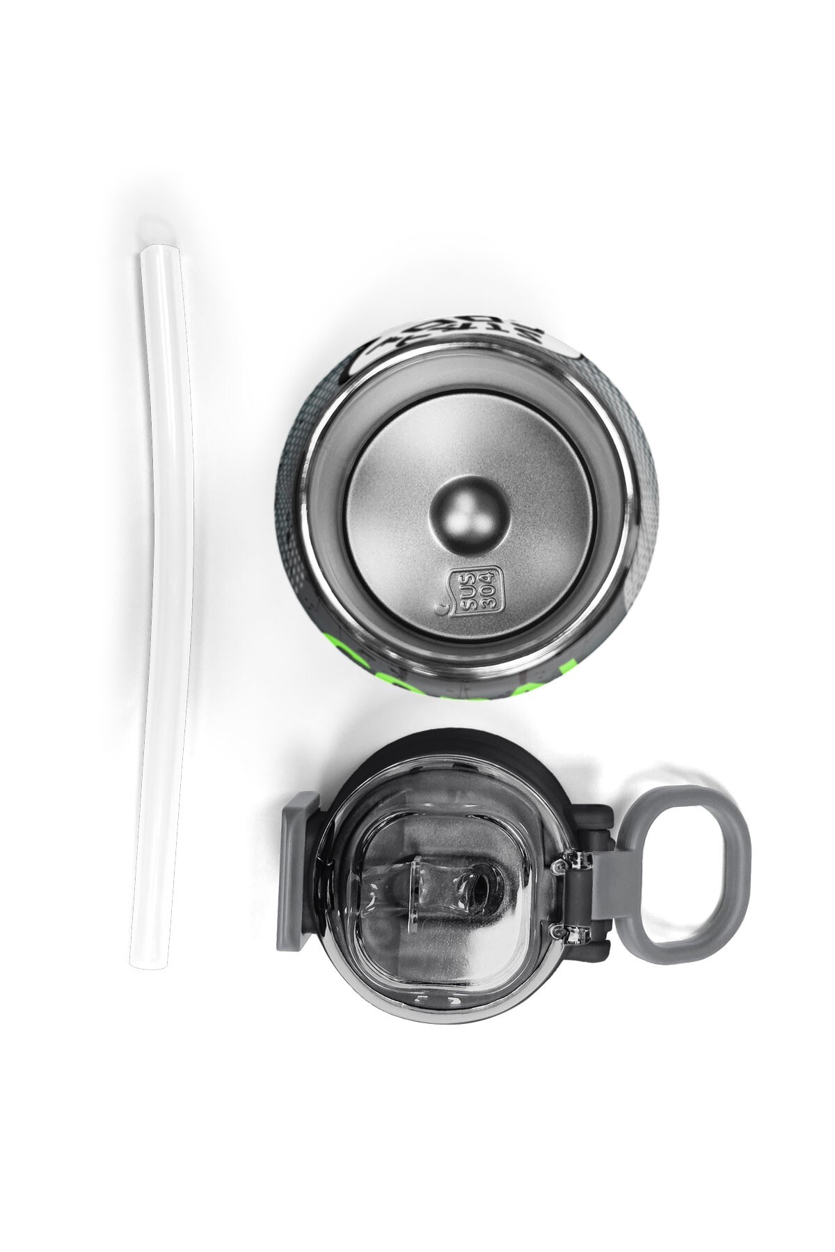 Coral High Kids Gri Nefti Anime Motorsiklet Desenli Pipetli ve Direkt İçim Çelik Termos 500 ml 31965