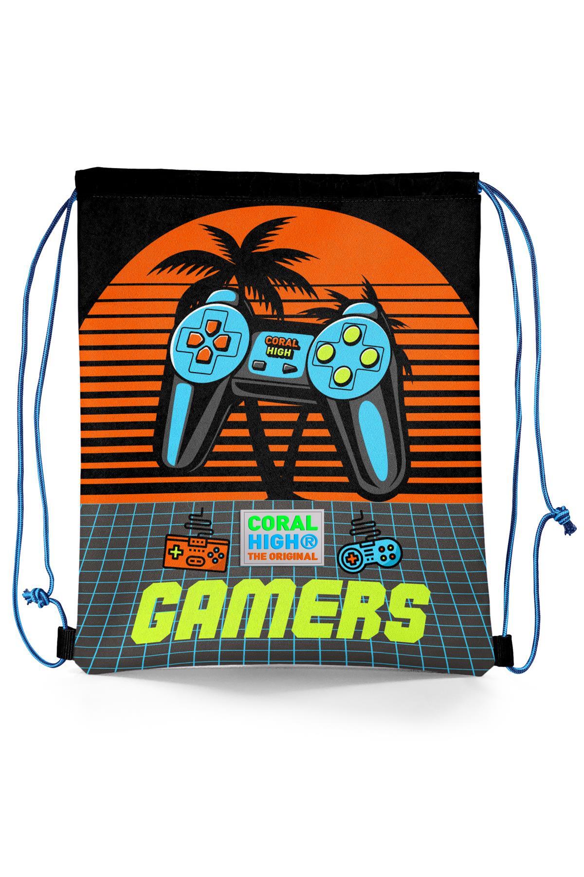 Coral High Kids Gri Turuncu Gamer Desenli İpli Büzgülü Sırt Çantası 22446