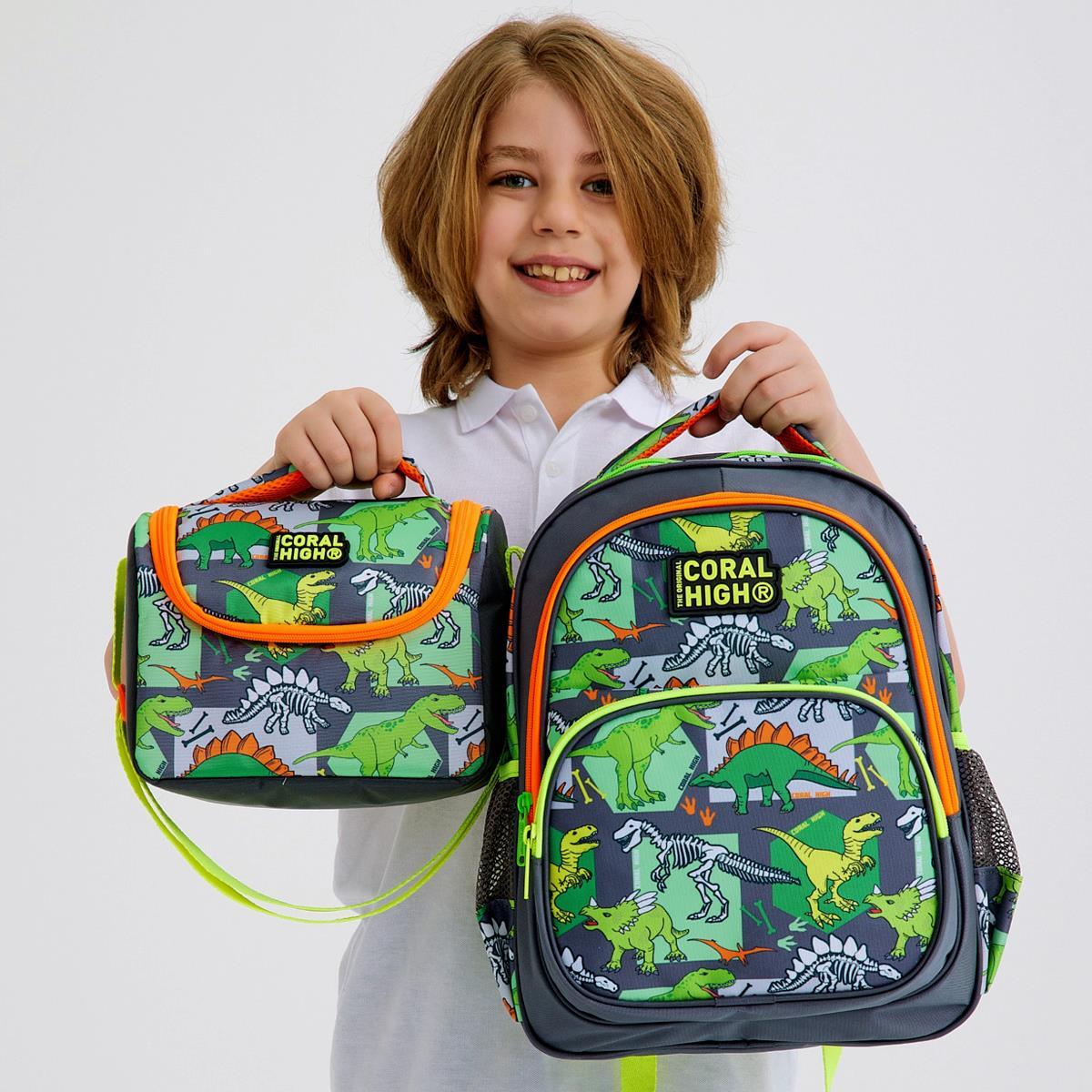 Coral High Kids Gri Yeşil Dinozor Desenli 3'lü Okul Çanta Seti SET0114419