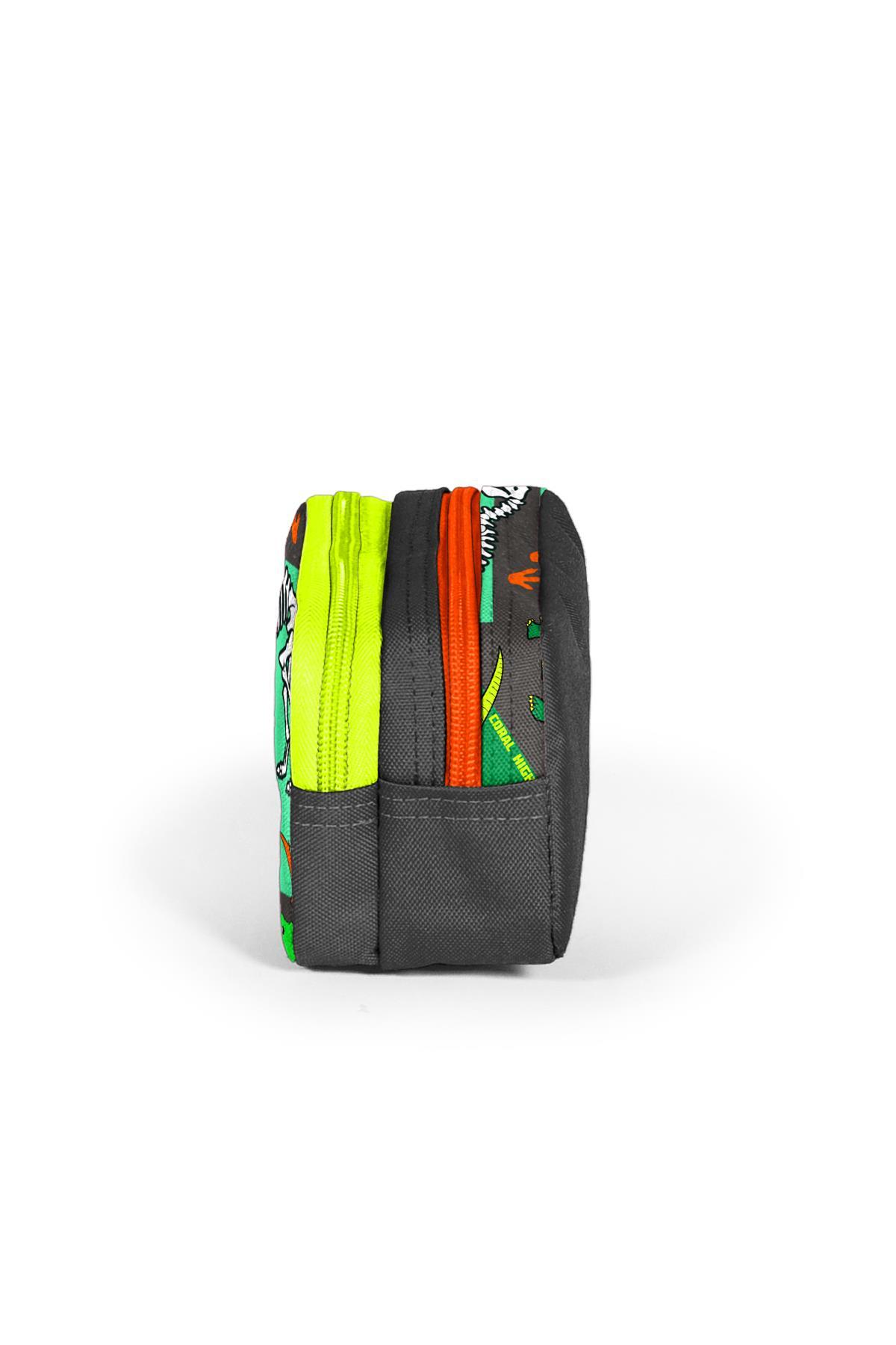 Coral High Kids Gri Yeşil Dinozor Desenli İki Bölmeli Kalem Çantası 22165